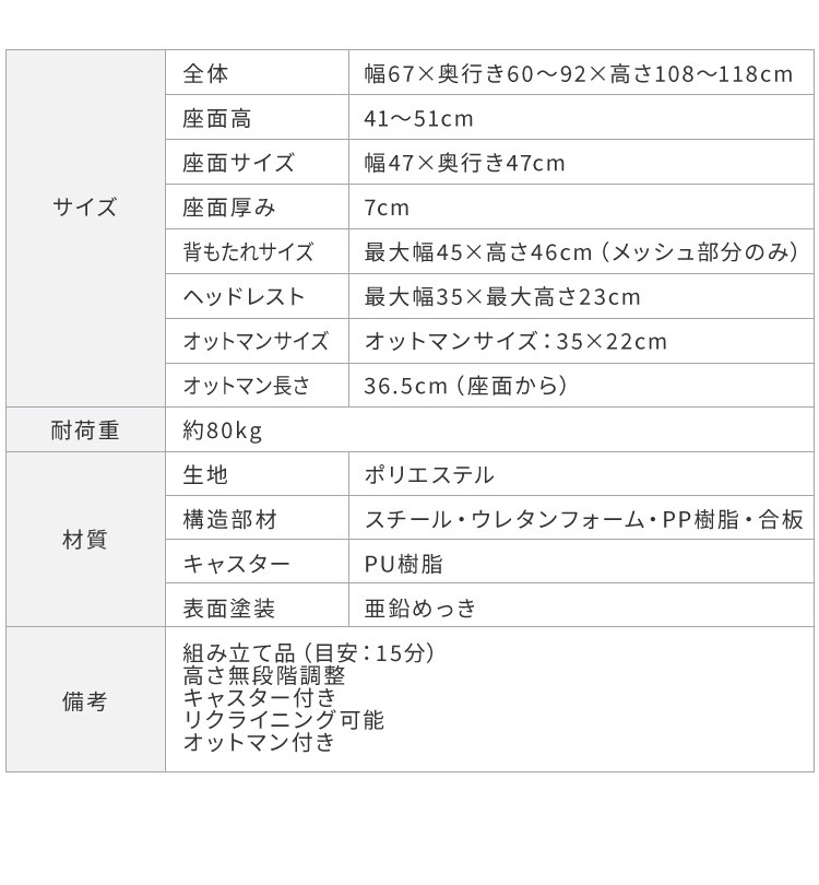 背もたれサイズ:最大幅45×高さ46cm(メッシュ部分のみ)