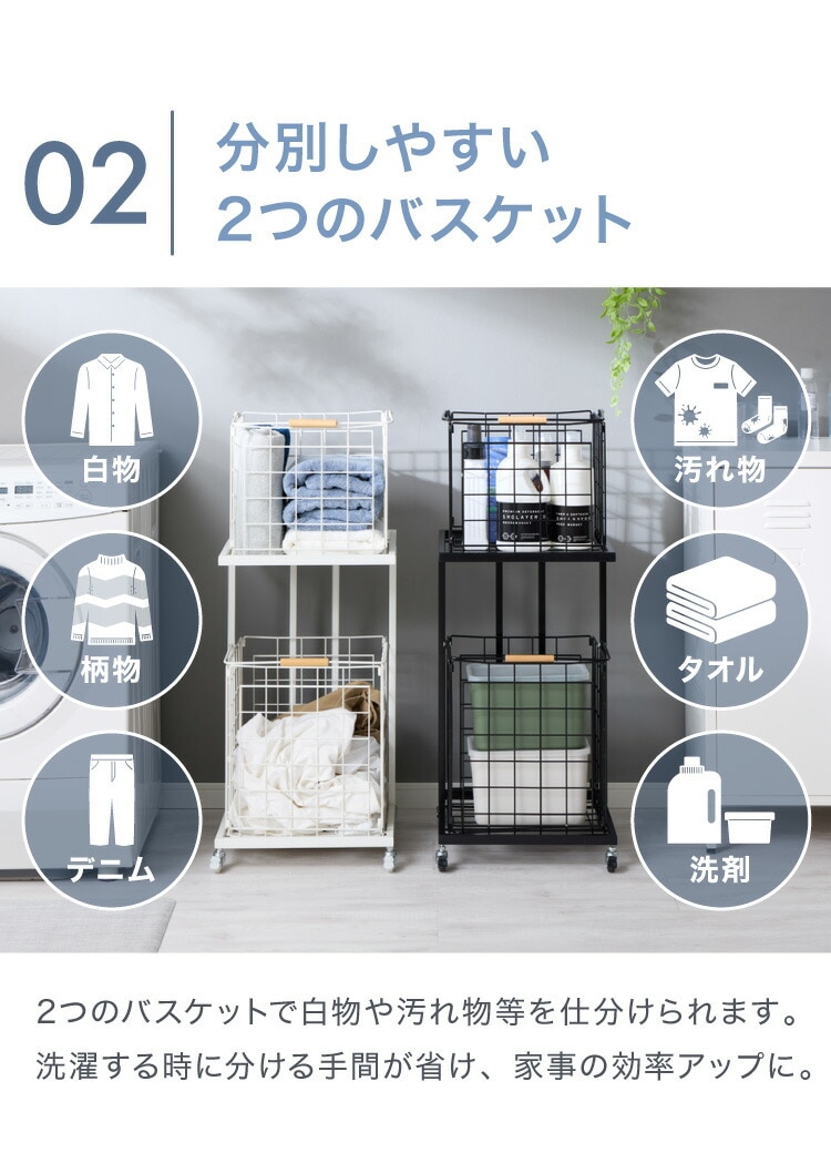 ・かごが2段あり、取り出しやすいワイヤーバスケットです。