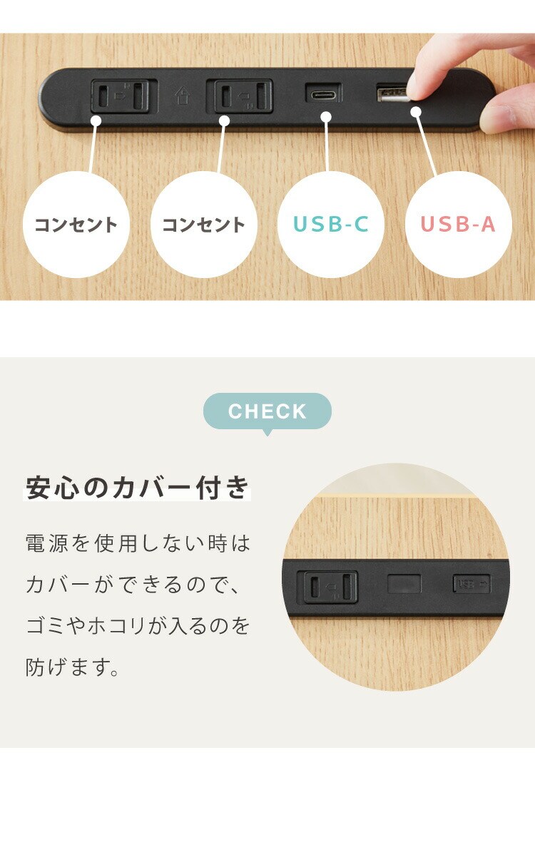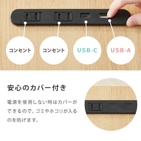 ・コンセント2個口、USB-A、USB-Cが付いているので、充電には困りません。