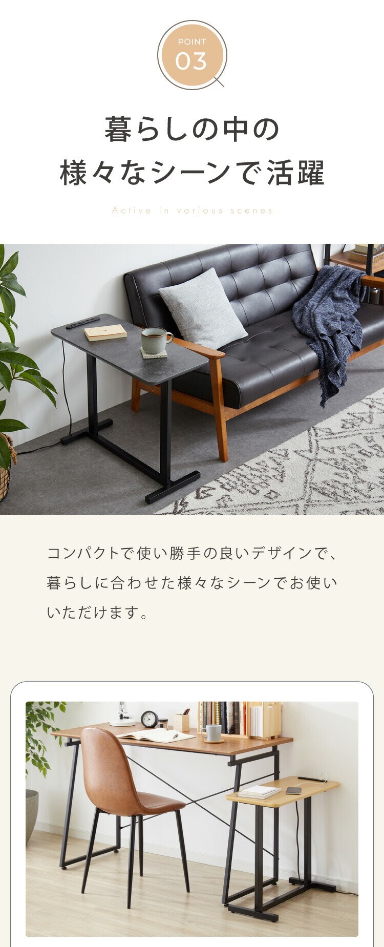 ・ソファテーブルでもサイドテーブルでも両方で使用できるマルチテーブルです。