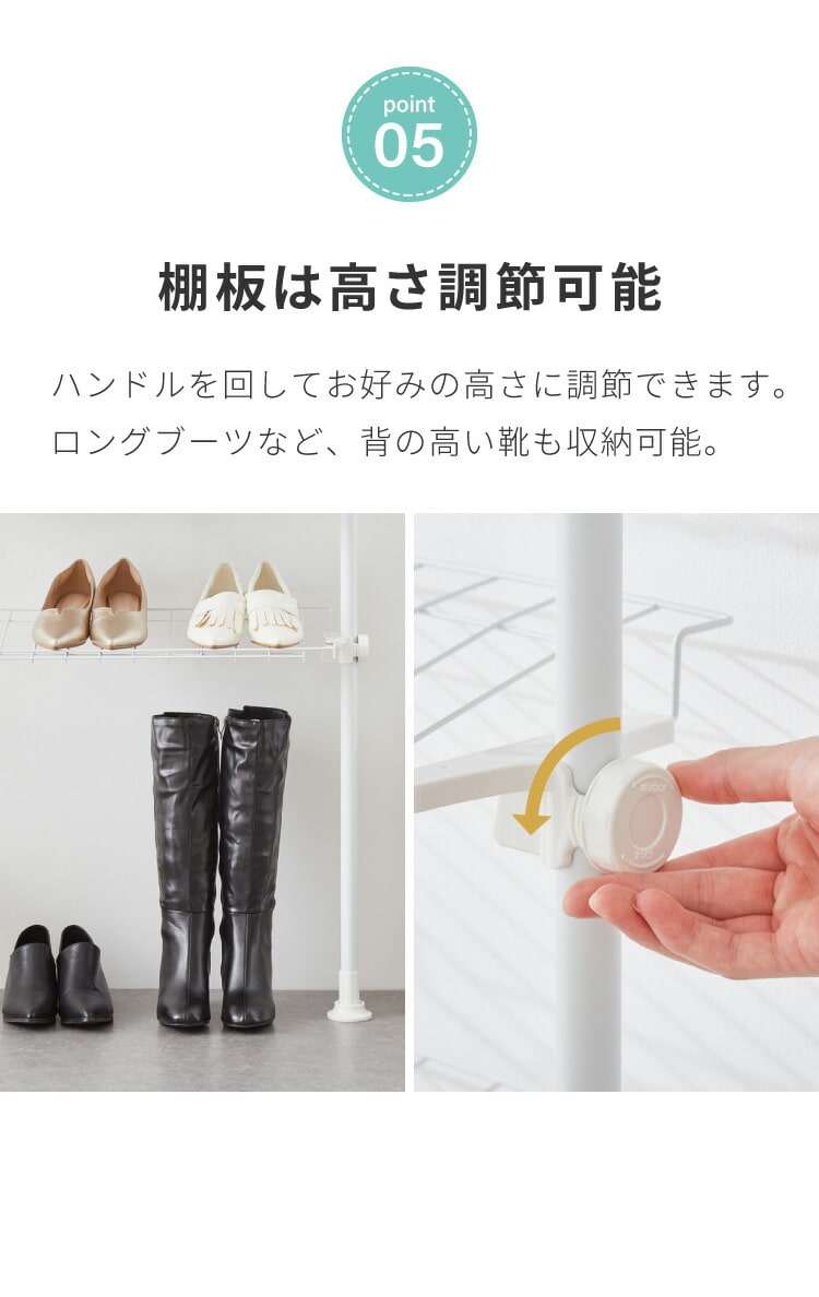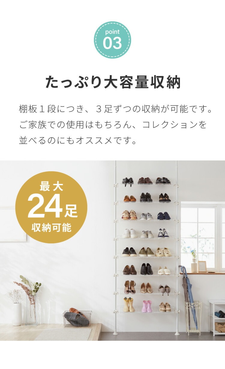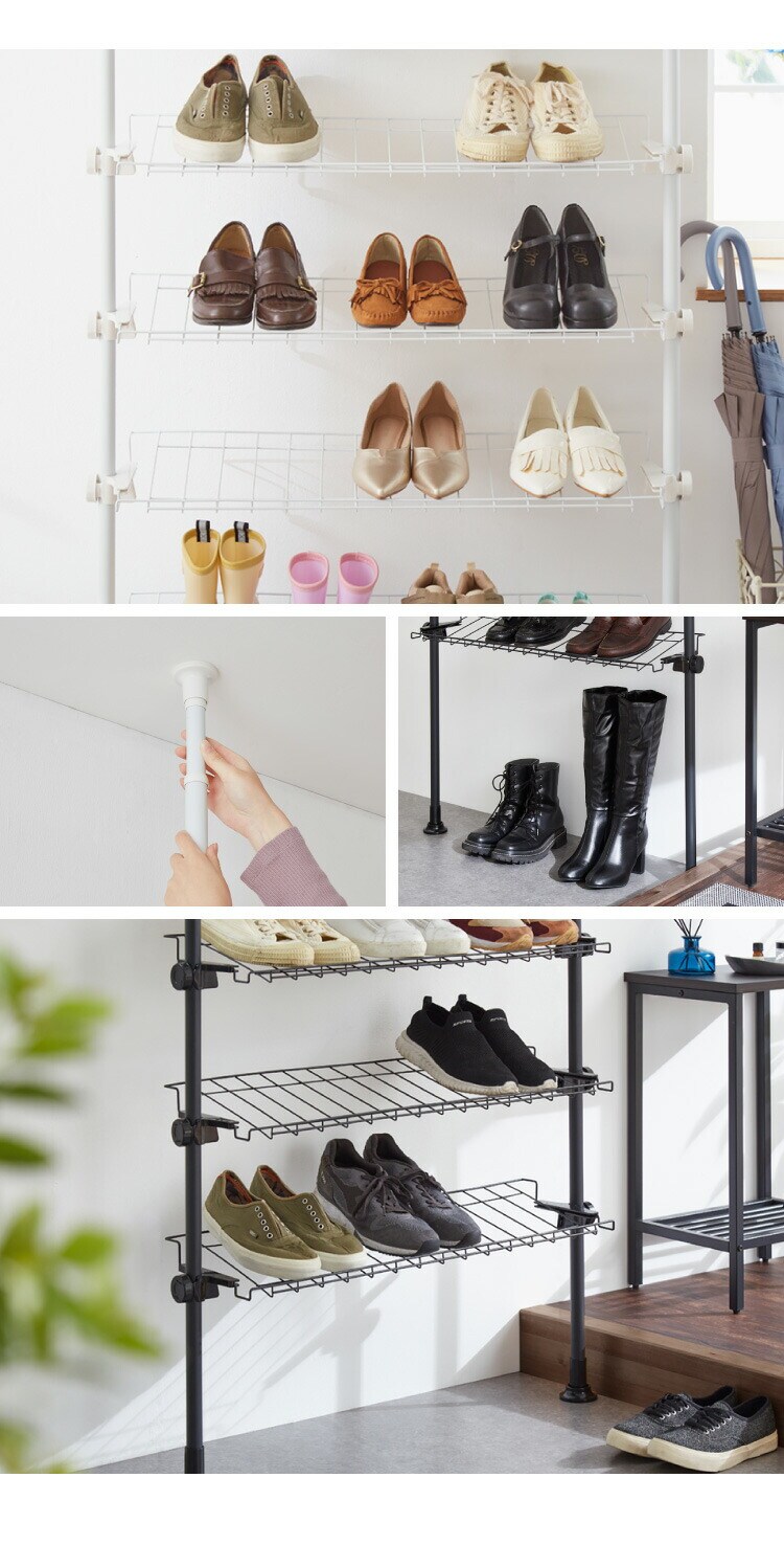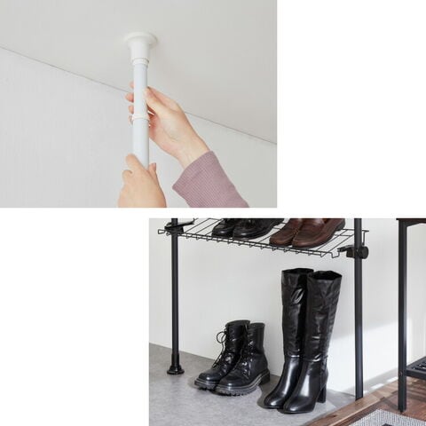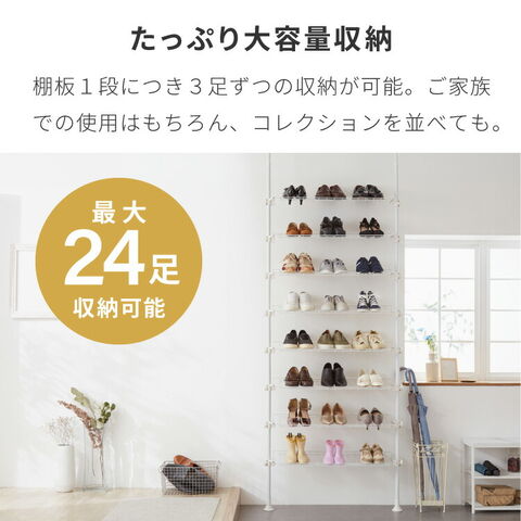 ・たくさんの靴を収納できる、突っ張り式のシューズラックです。