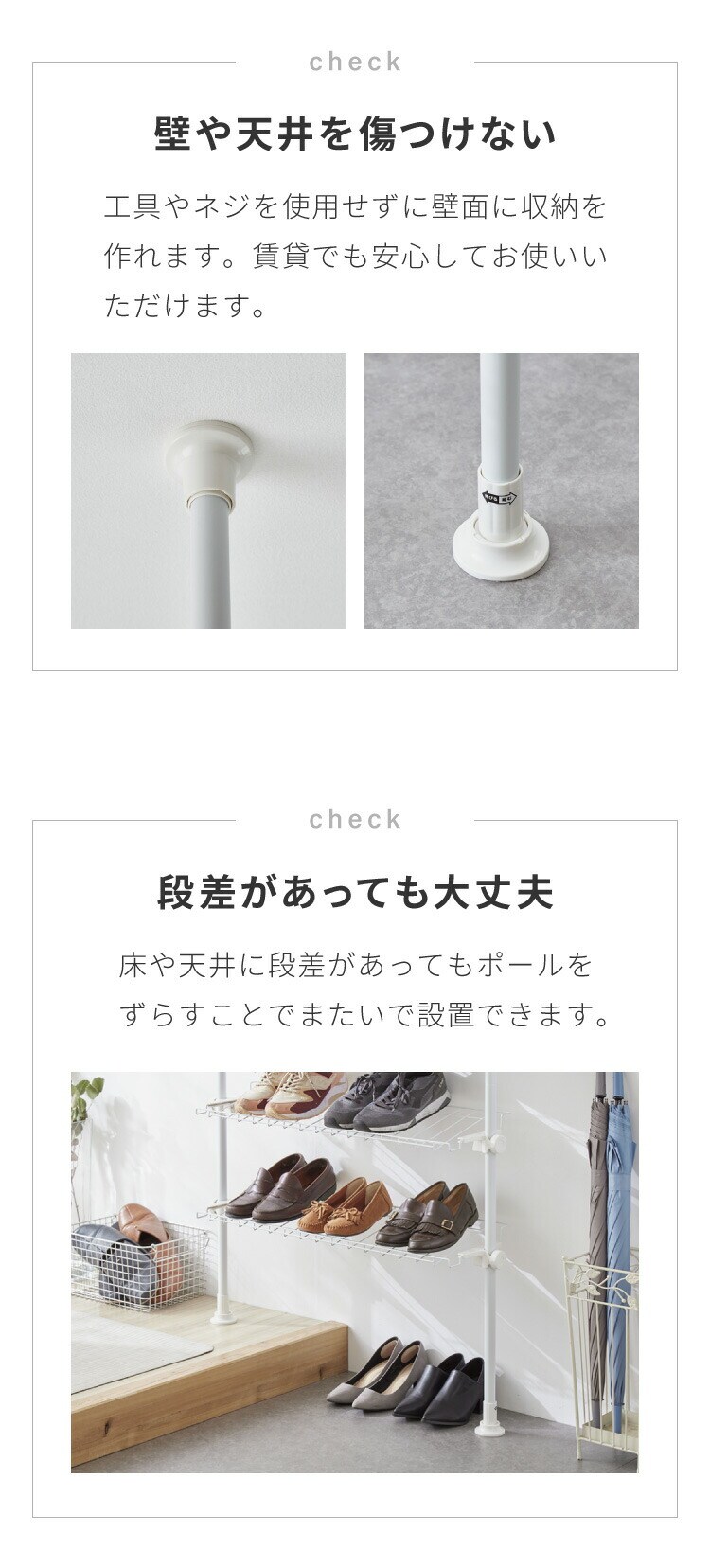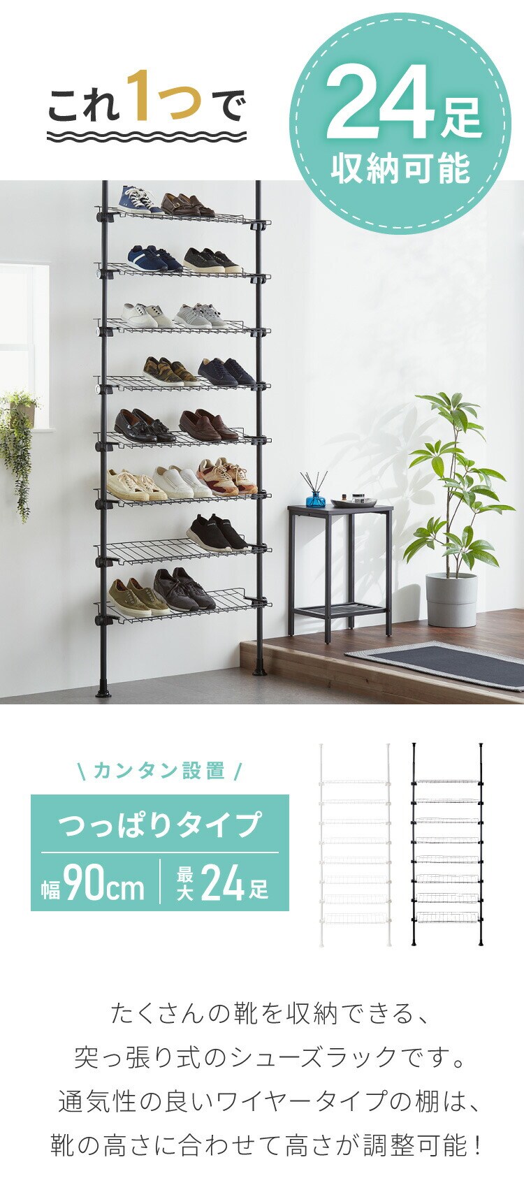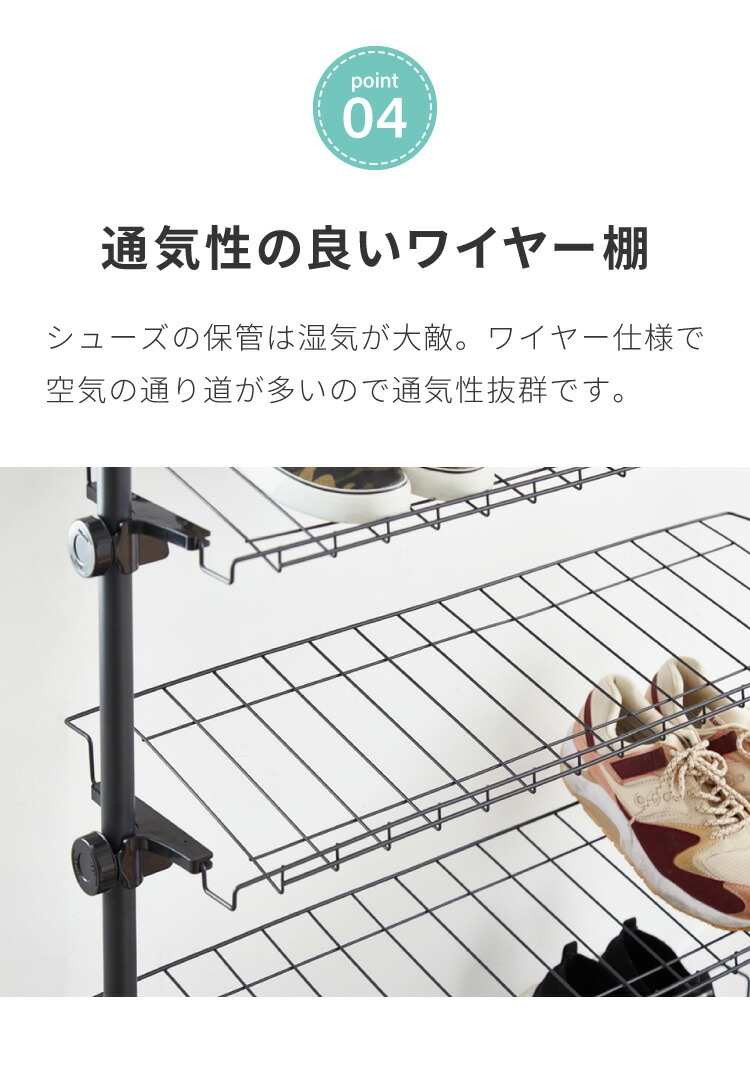 ・たくさんの靴を収納できる、突っ張り式のシューズラックです。