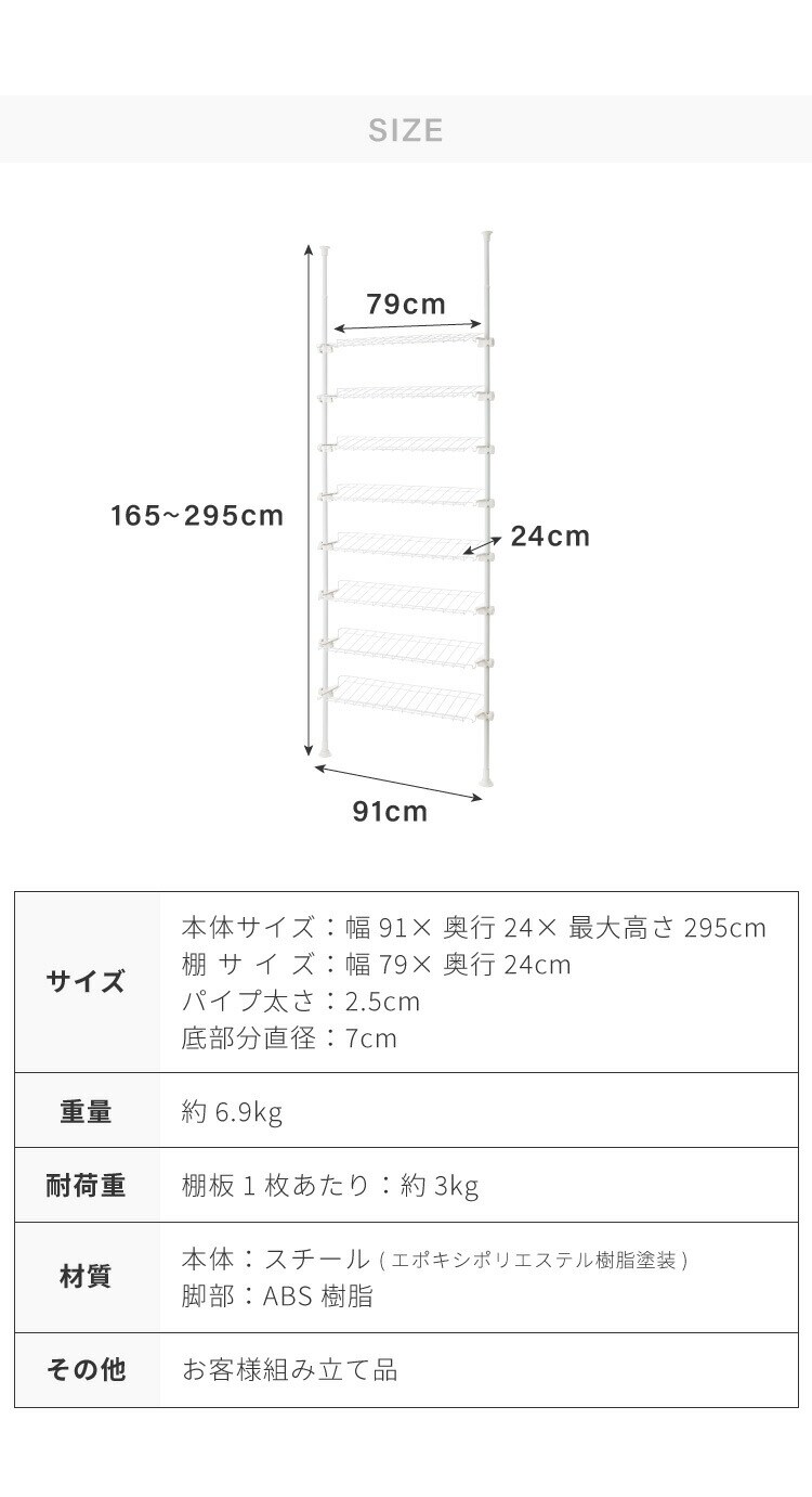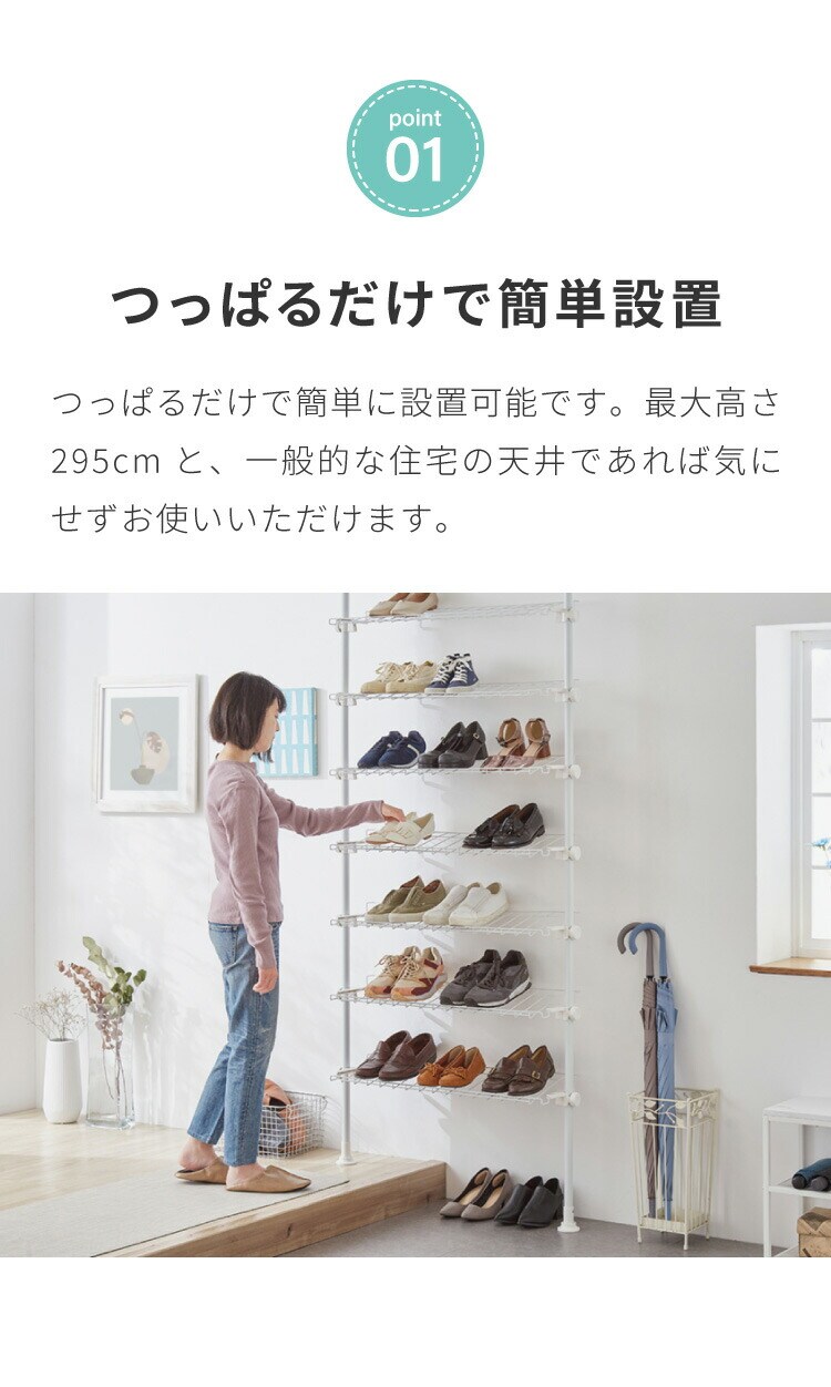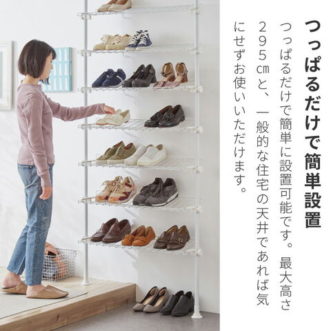 突っ張り シューズラック 8段 スリム 省スペース 棚自由自在 下駄箱 スリム 玄関収納 薄型 靴 靴箱 靴ラック 省スペース 壁面収納 つっぱり 靴収納棚 突っ張り シューズ ラック【送料無料】