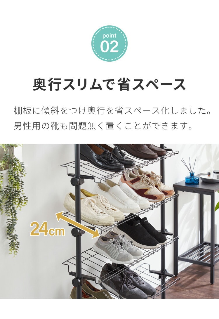 ・棚が8段ついており、最大24足収納できます。