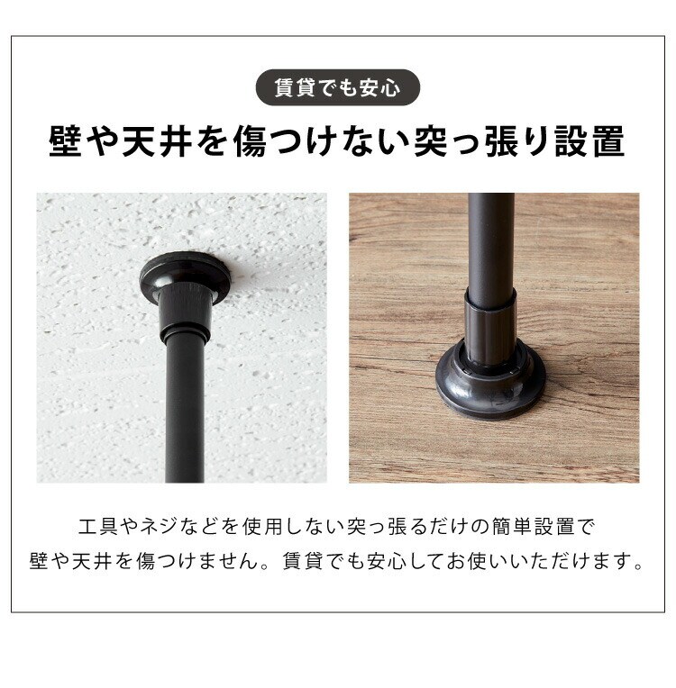 ・設置方法は突っ張り式なので、場所を選ばずに設置可能です。