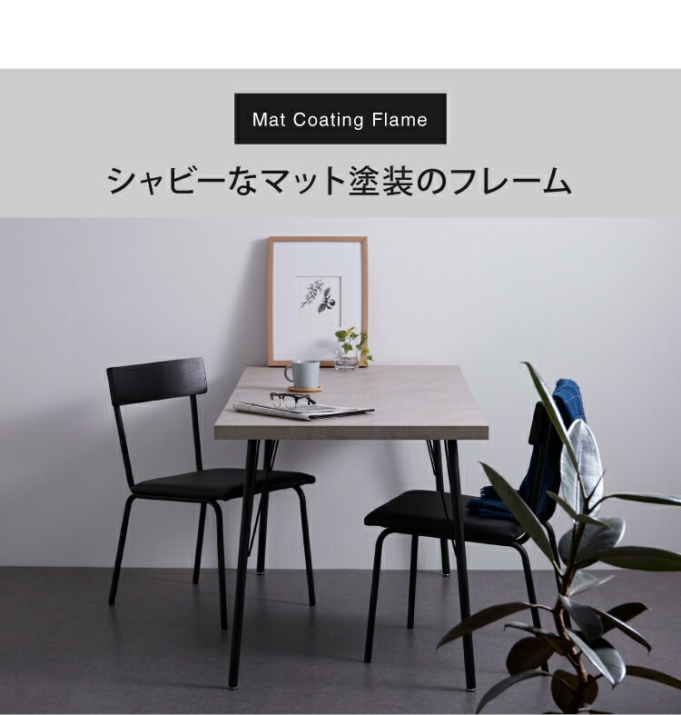 ・スチールの脚と大理石調グレーの天板がお部屋を引き立たせるダイニングテーブルです。