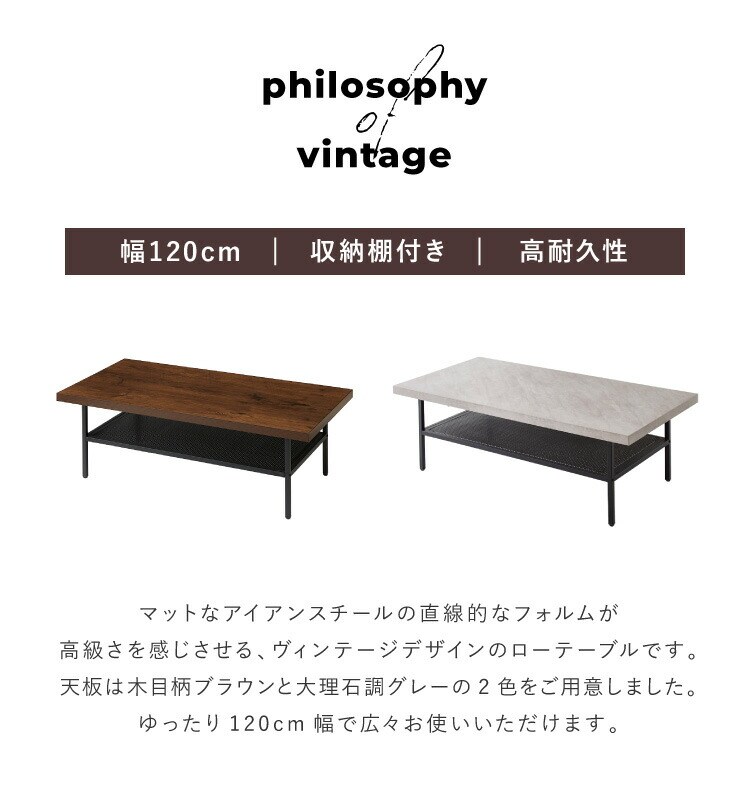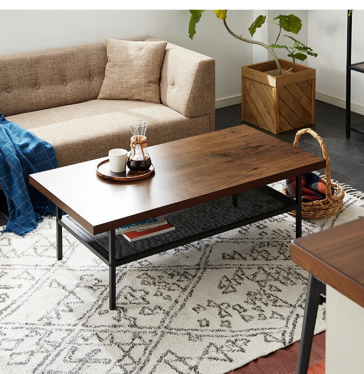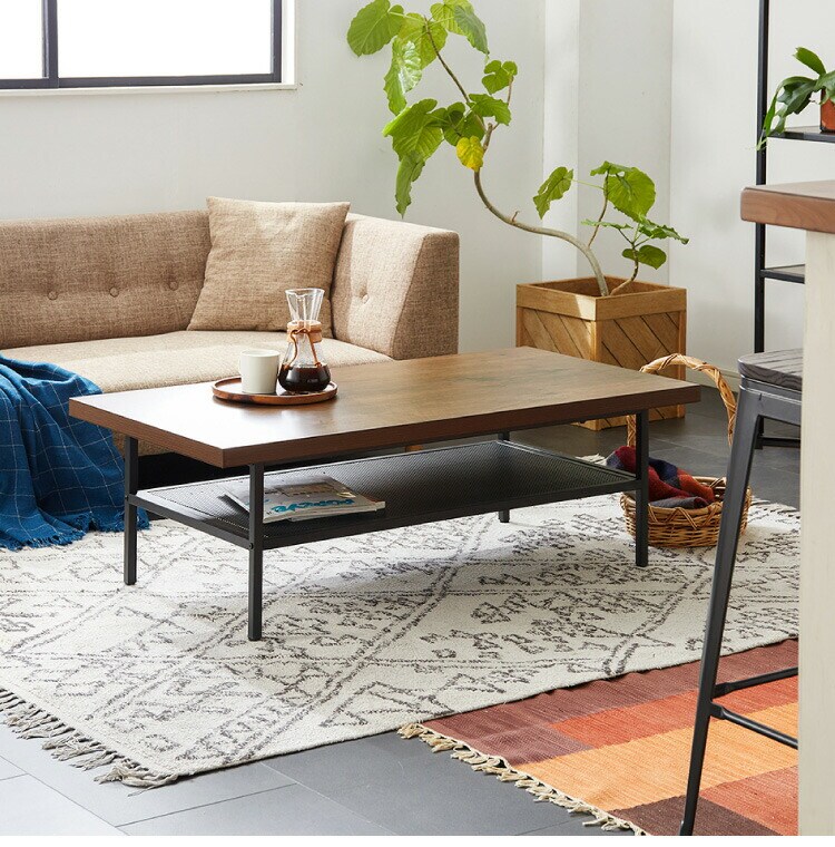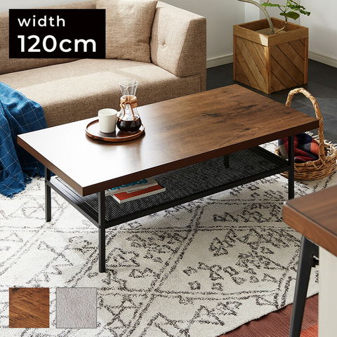 ローテーブル 幅120cm 長方形 収納棚 木目 アイアン ブラウン おしゃれ シンプル ヴィンテージ調 一人暮らし リビング センターテーブル テーブル リビングテーブル コーヒーテーブル 収納 【送料無料】