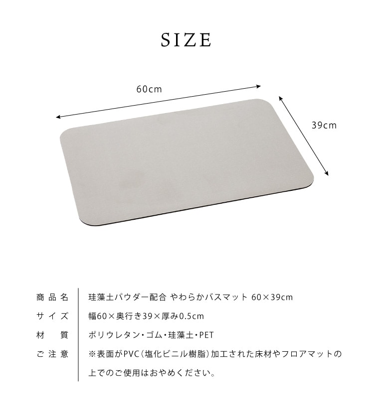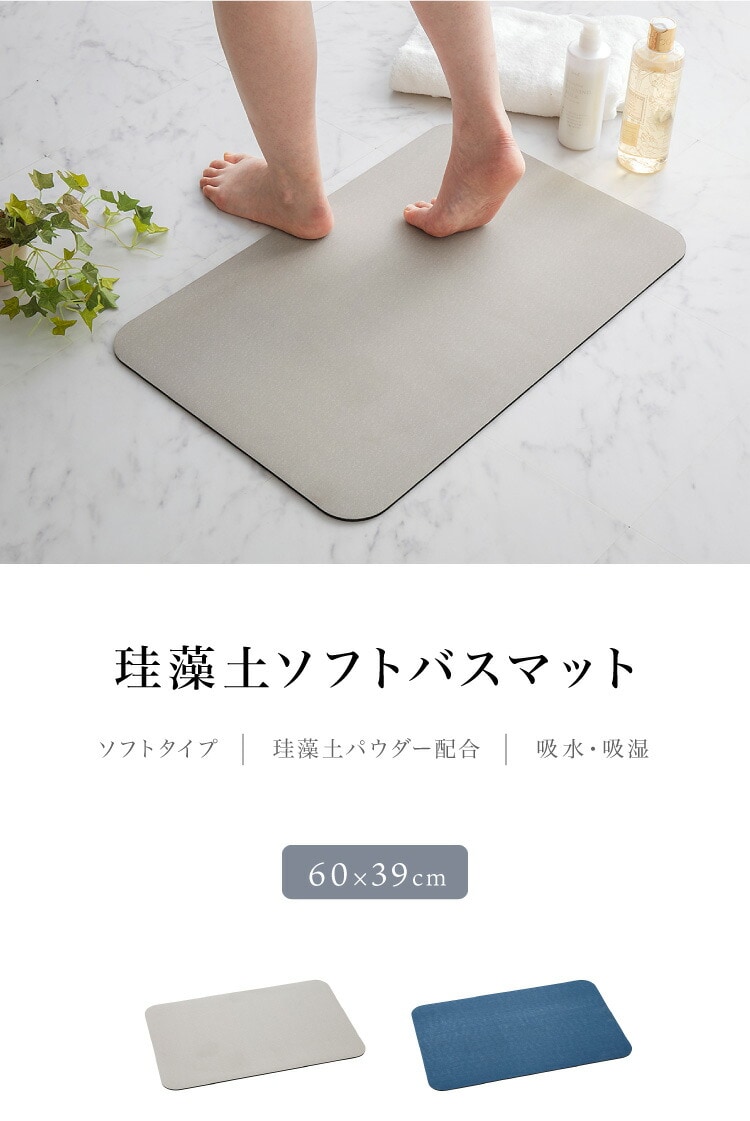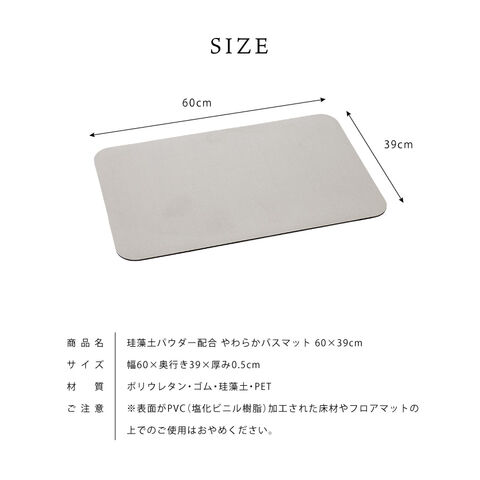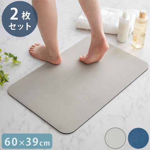 珪藻土パウダー配合 やわらかバスマット 60×39cm 2個セット