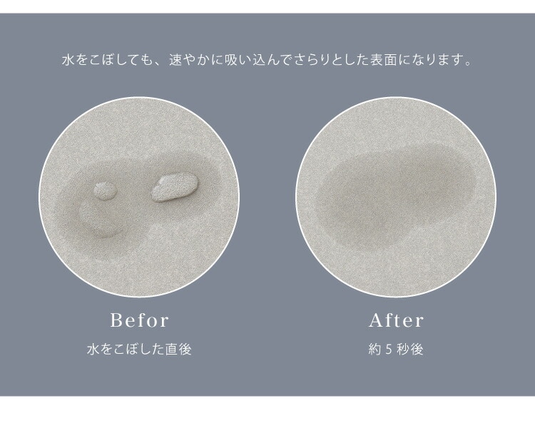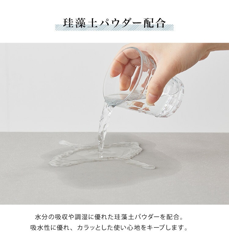 ・珪藻土パウダーを使用しているので、吸水性あり。