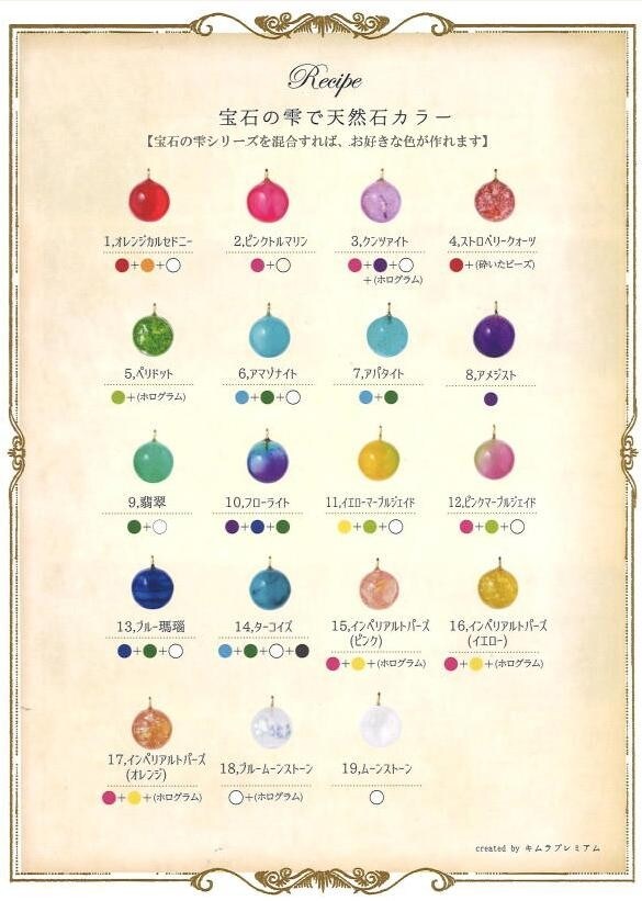 透明樹脂(UVレジン)用の液体着色剤です。液体なので、レジン液と混ざりやすく、発色がきれいです。入れる量によって色の濃さを変えたり、着色剤同士で混ぜることもできるので好きな色を作ることもできます♪