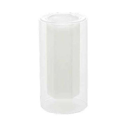 クリアの円柱の中にうっすらと個性的なフォルムが浮かんで見えるフラワーベース。