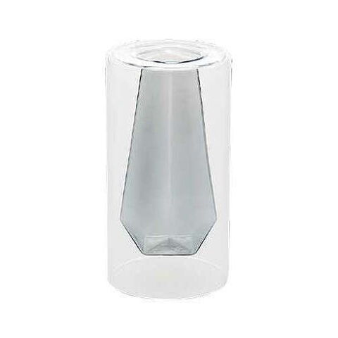 クリアの円柱の中にうっすらと個性的なフォルムが浮かんで見えるフラワーベース。