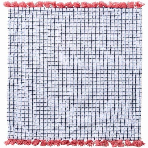 白地に格子柄を効かせ、アクセントカラーのフリンジをプラスしたディッシュクロスです。