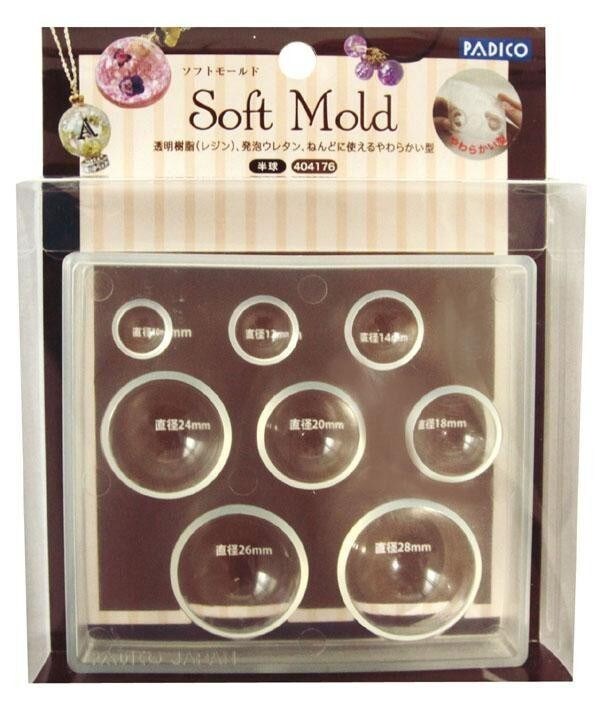 ★直径10mm・直径12mm・直径14mm・直径18mm・直径20mm・直径24mm・直径26mm・直径28mmの8種類の半球が作れる型です。