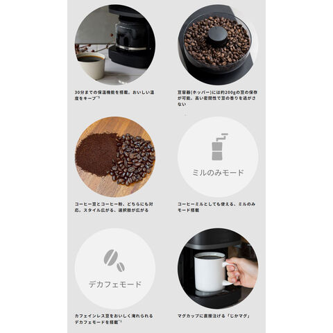 ひと手間かかる、豆と水の計量は不要。さらに、マグカップに直接抽出する「じかマグ」で、あなたの飲み方に合わせてより便利に。
