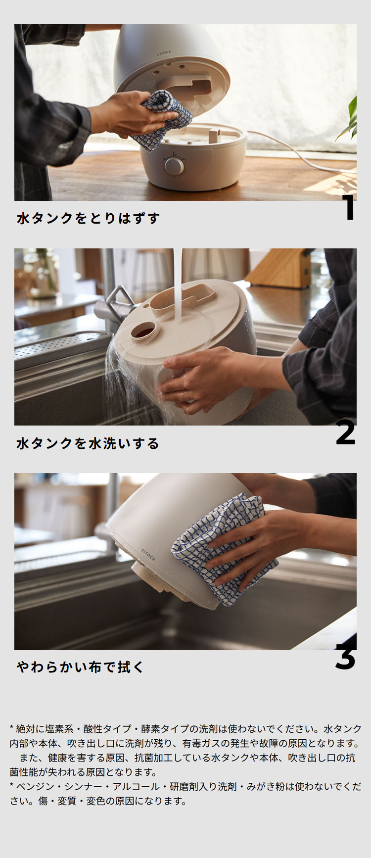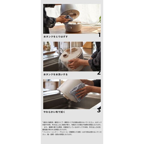 ・水タンクは取り外せて丸洗いできるので、いつも清潔にお使いいただくことが可能です。
