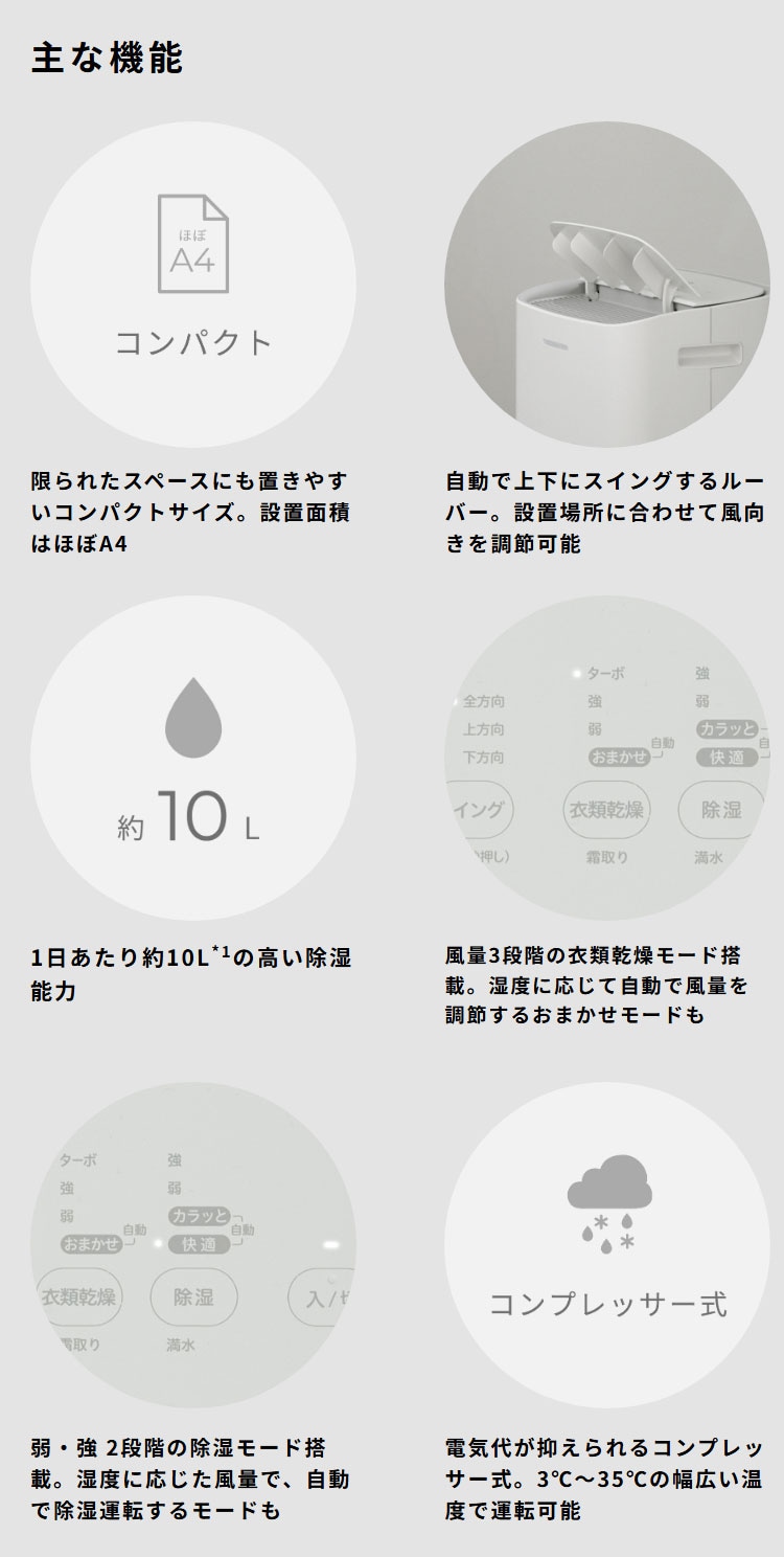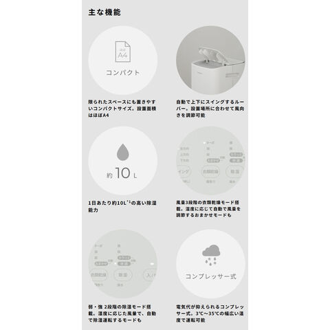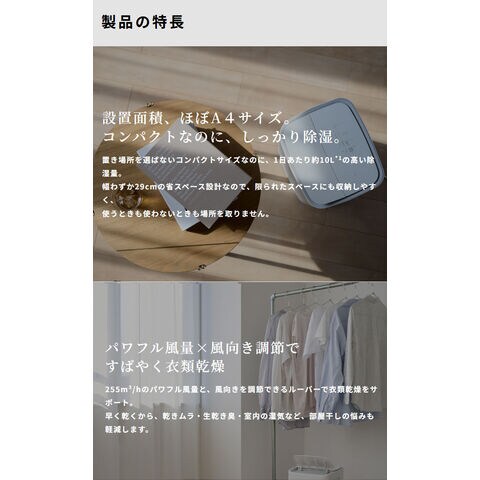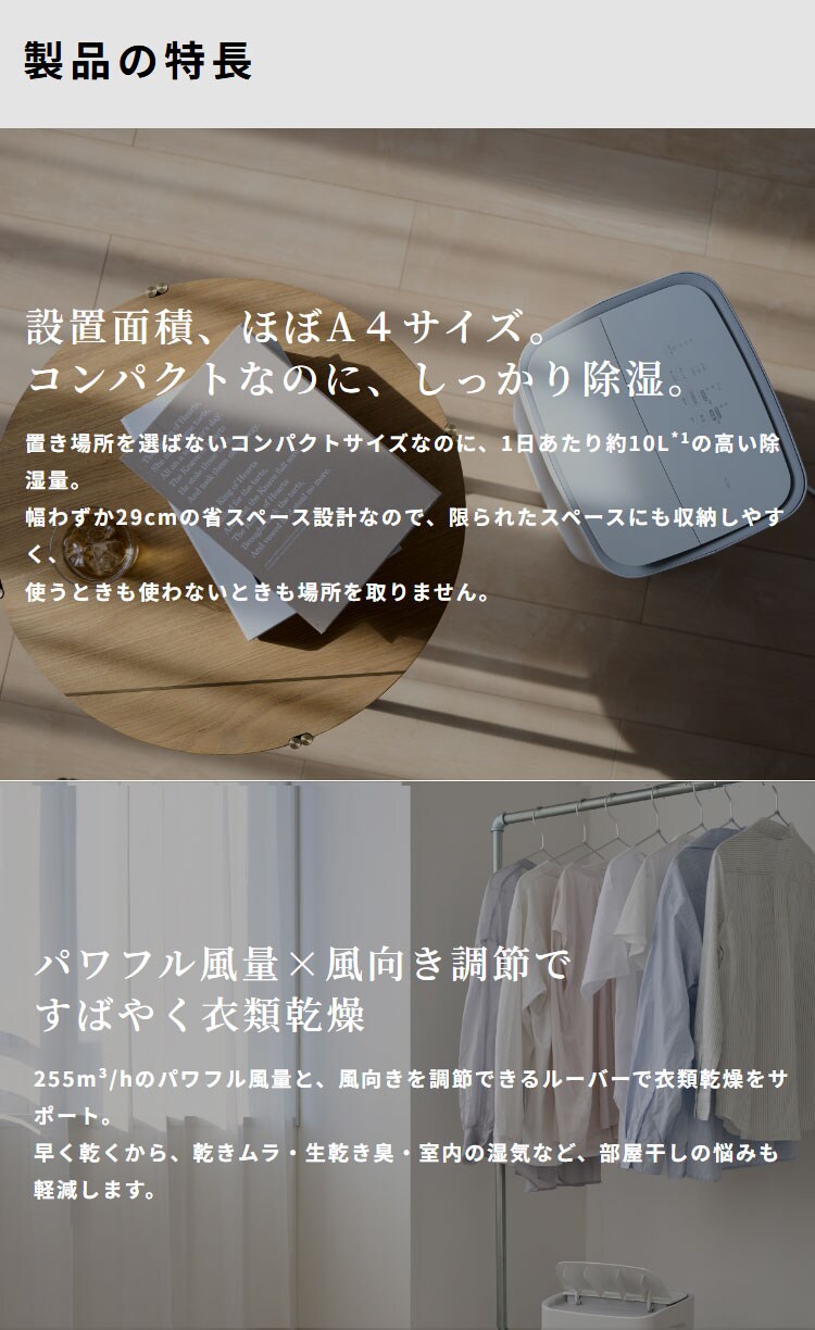・ほぼA4サイズのコンパクトさと除湿能力の高さを両立