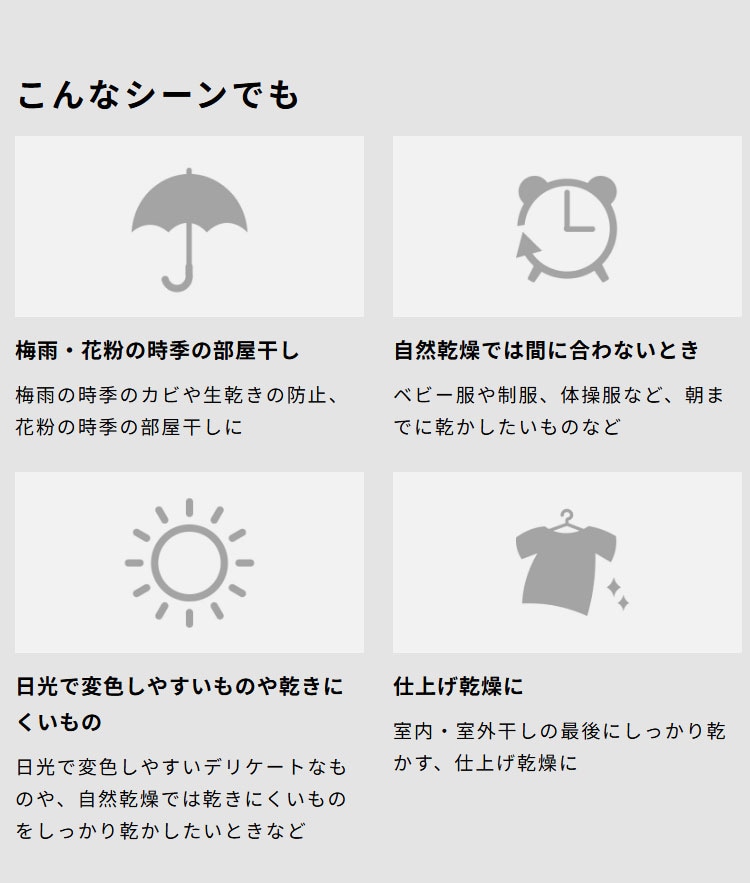 ・パワフル風量とオートルーバーですばやい衣類乾燥