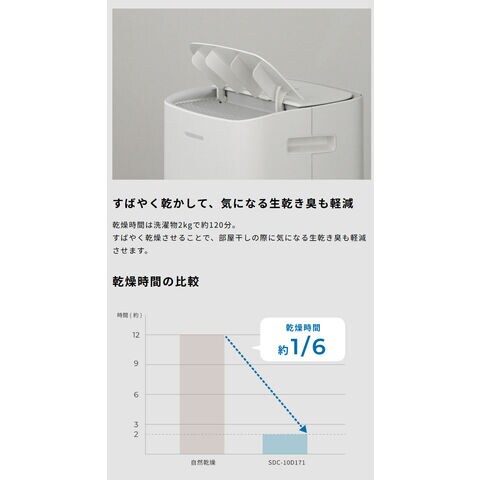 コンプレッサー式 除湿機 衣類乾燥モード搭載 2.8Lタンク お手入れかんたん 部屋干し カビ対策 コンパクト 省スペース 衣類乾燥 パワフル風量 風向き調節 SDC-10D171【送料無料】
