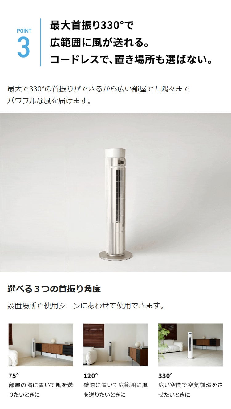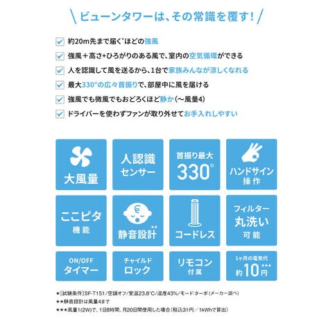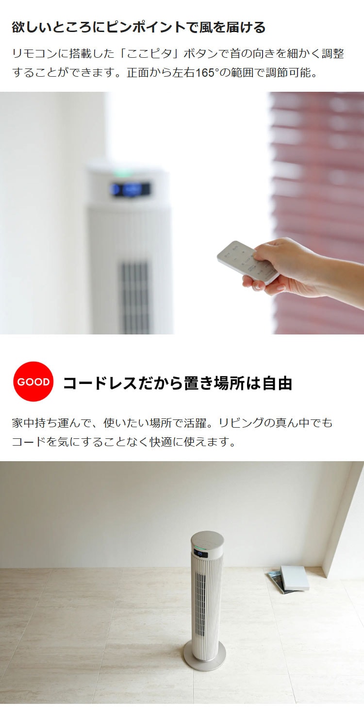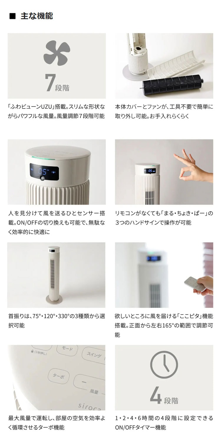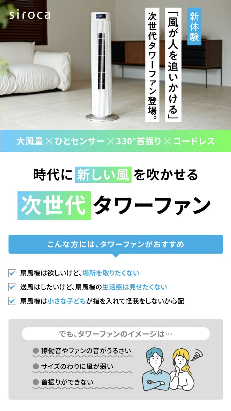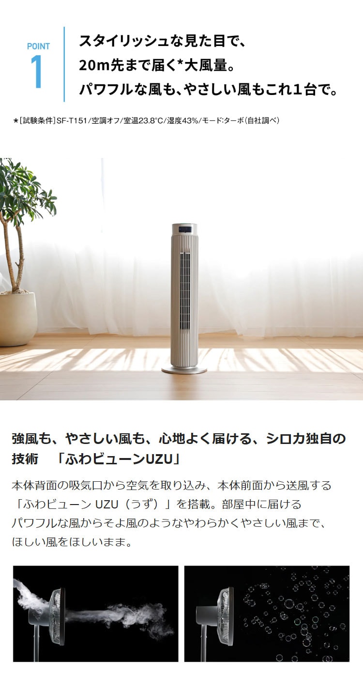 シロカの大風量タワーファン「ビューンタワー」に、“めくばり上手”なモデルが登場!