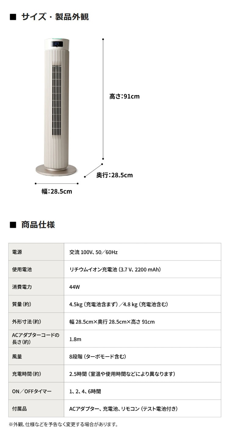 外形寸法(約):幅28.5cm×奥行28.5cm×高さ91cm