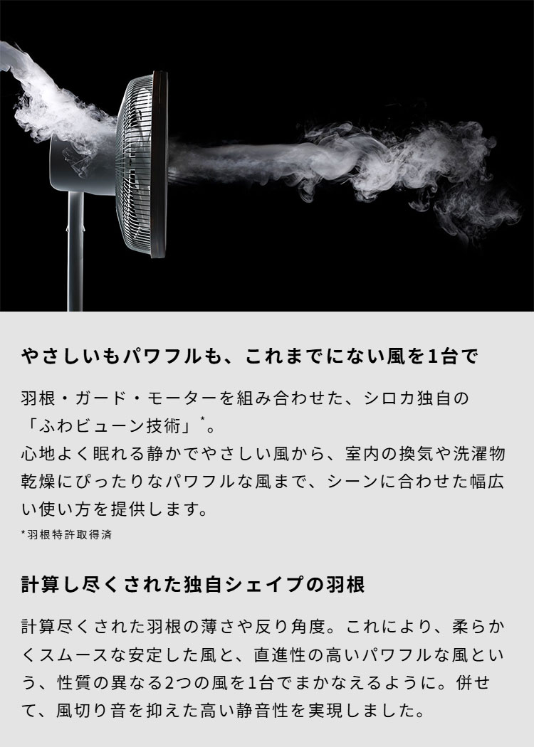 4.「ふわビューン技術」により“静かでやさしい風”と“パワフルな風”の両方を実現