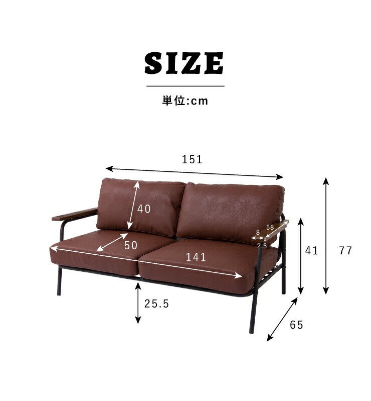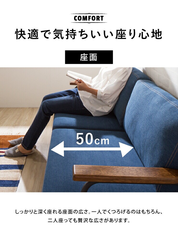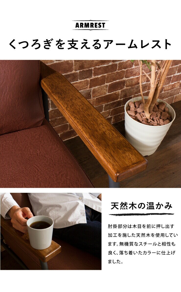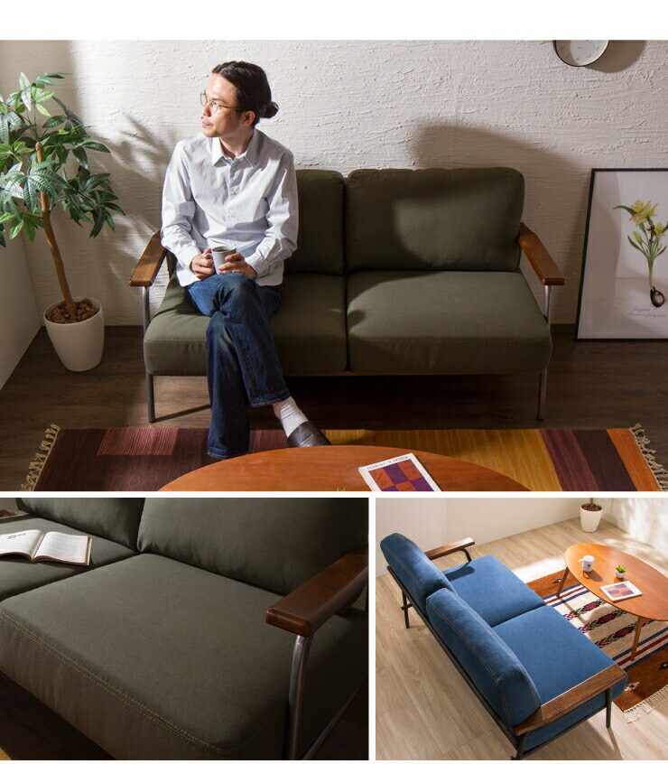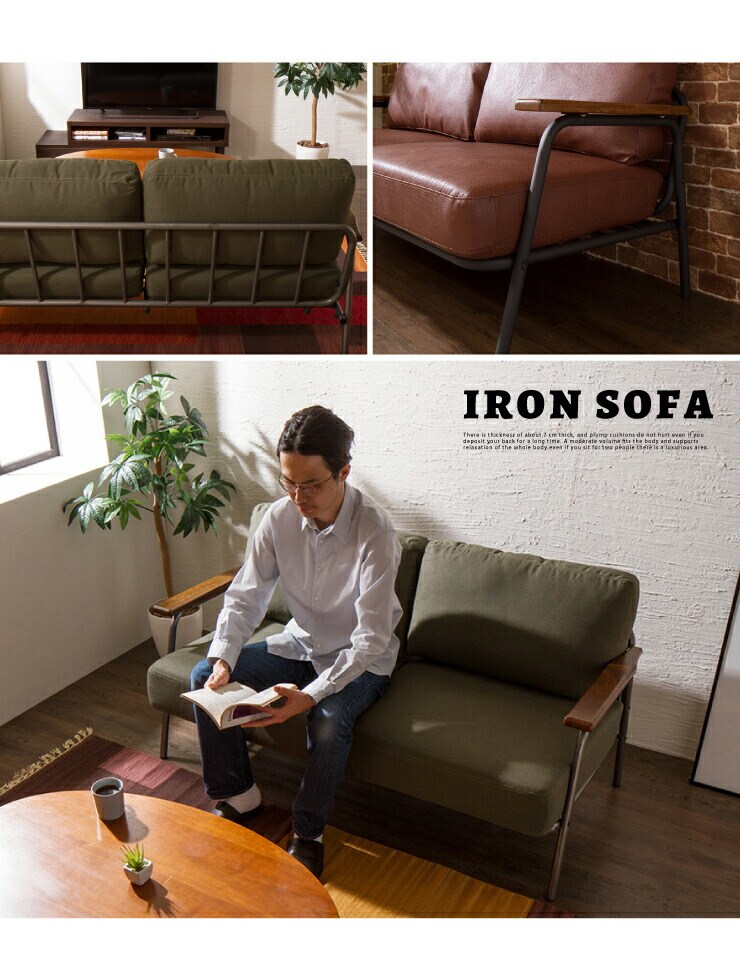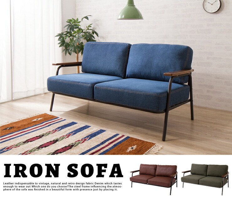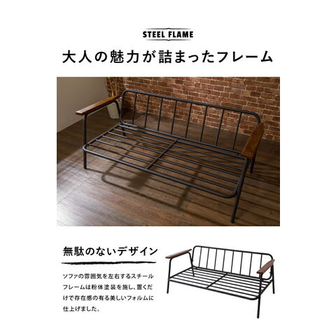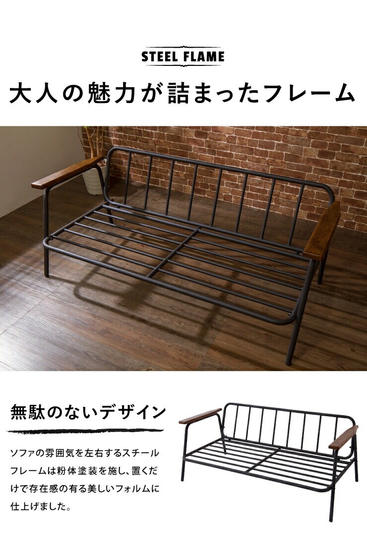 アイアンソファ 2.5人掛け 2Pソファ インダストリアル カジュアル 木肘 sofa ソファー 西海岸 おしゃれ【送料無料】