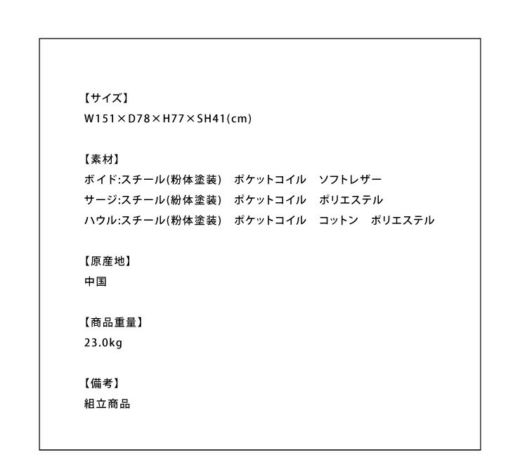 ボイド:スチール(粉体塗装) ポケットコイル ソフトレザー