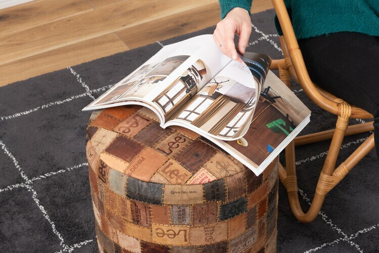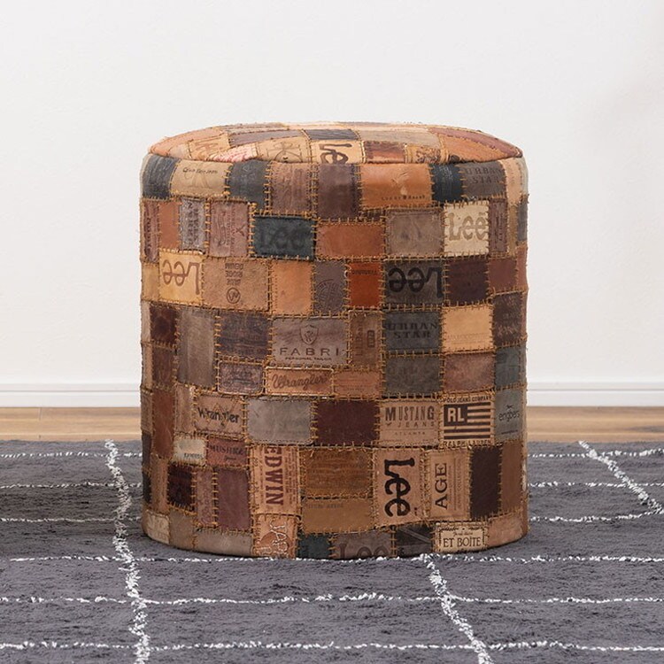 スツール ラウンドスツール おしゃれ タグ 腰掛け レザー ラウンドスツール 個性的 ヴィンテージ ラウンド 丸 大きめ オットマン リビング 寝室 店舗 ディスプレイ【送料無料】