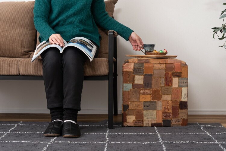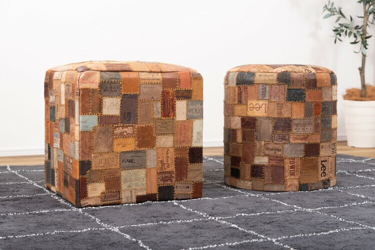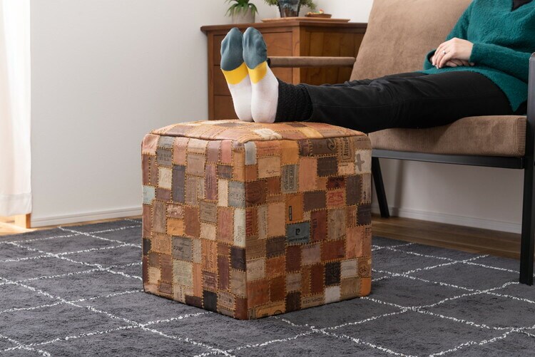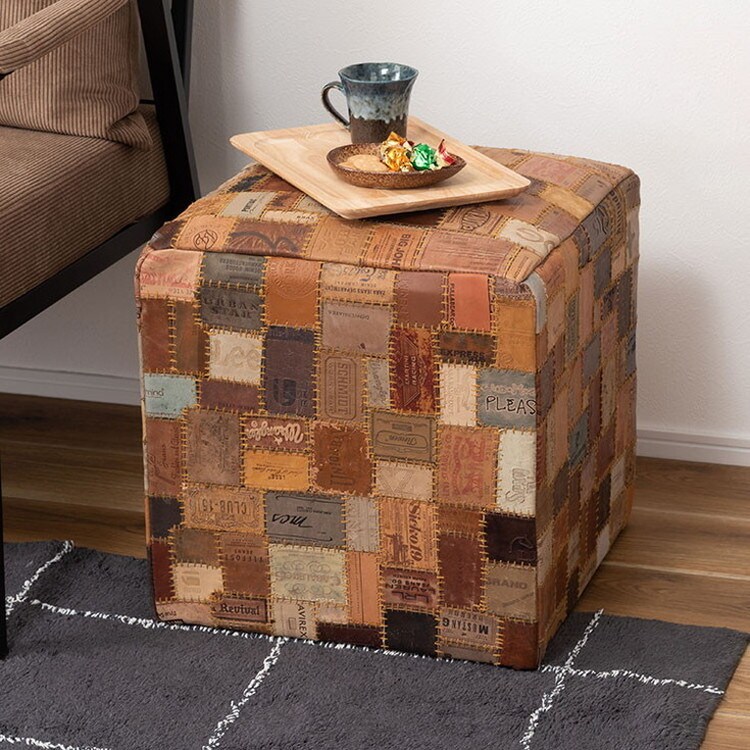スツール キューブスツール おしゃれ タグ 腰掛け レザー ラウンドスツール 個性的 ヴィンテージ ラウンド 丸 大きめ オットマン リビング 寝室 店舗 ディスプレイ【送料無料】