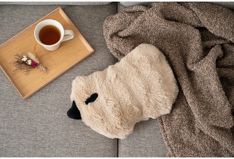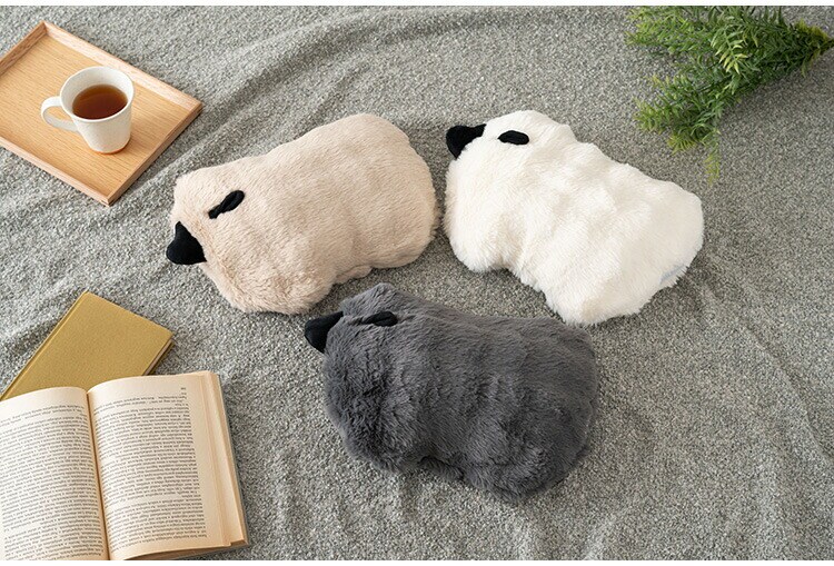 電源を繋いで蓄熱することであたたかさが持続してくれるので、 面倒なお湯の入れ替えは一切不要なエコ仕様です。 もこもこの凹凸が特徴的な生地を使用し、触り心地にもこだわりました。