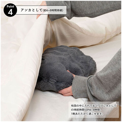 ●お布団の中等に入れてアンカとしてお使いの場合は約6~8時間持続。カイロとしてお使いの場合は約4時間持続してくれます。