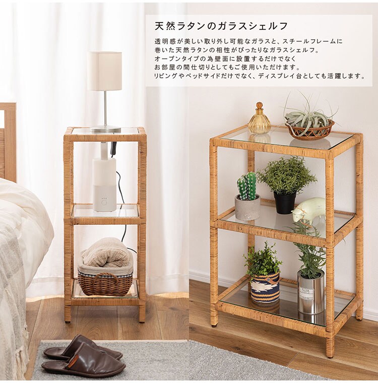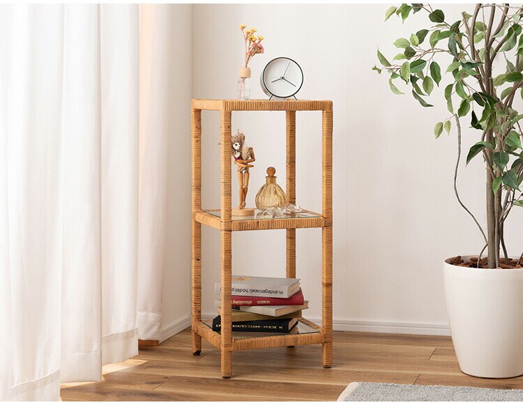 ガラスシェルフ GUY-2 東谷 シェルフ ガラス ガラスシェルフ ラタン 籐 クリア 収納 収納棚 ラック オープンラック 3段 三段 見せる収納 シンプル 北欧 ナチュラル ナイトテーブル 強化ガラス【送料無料】