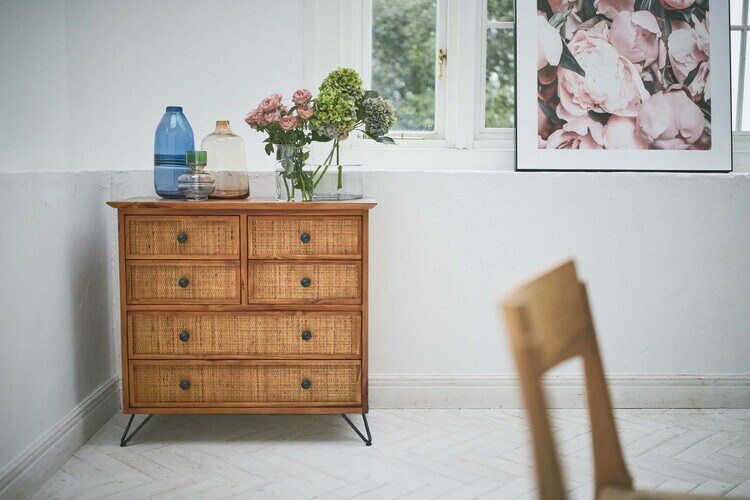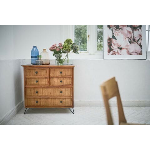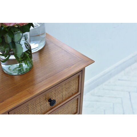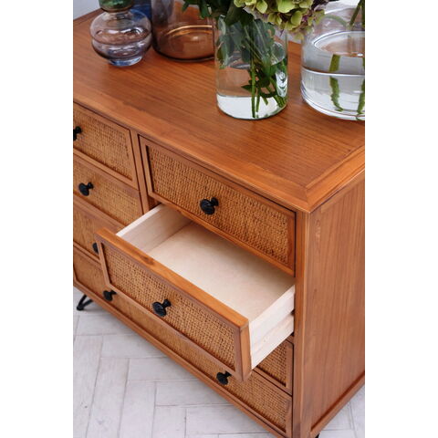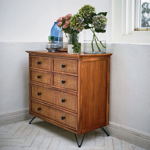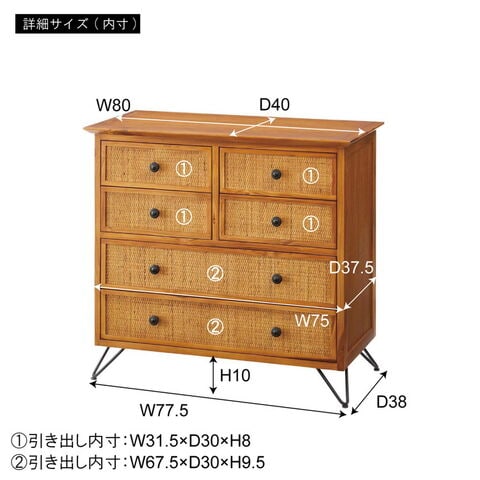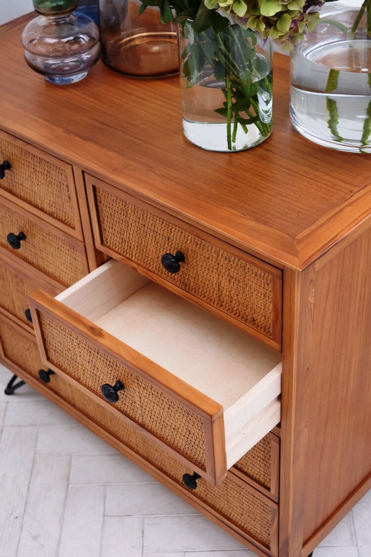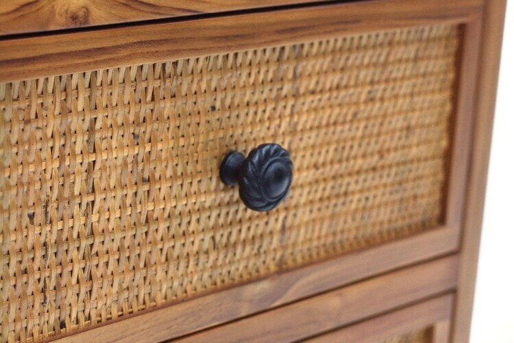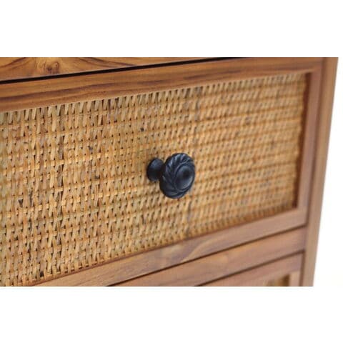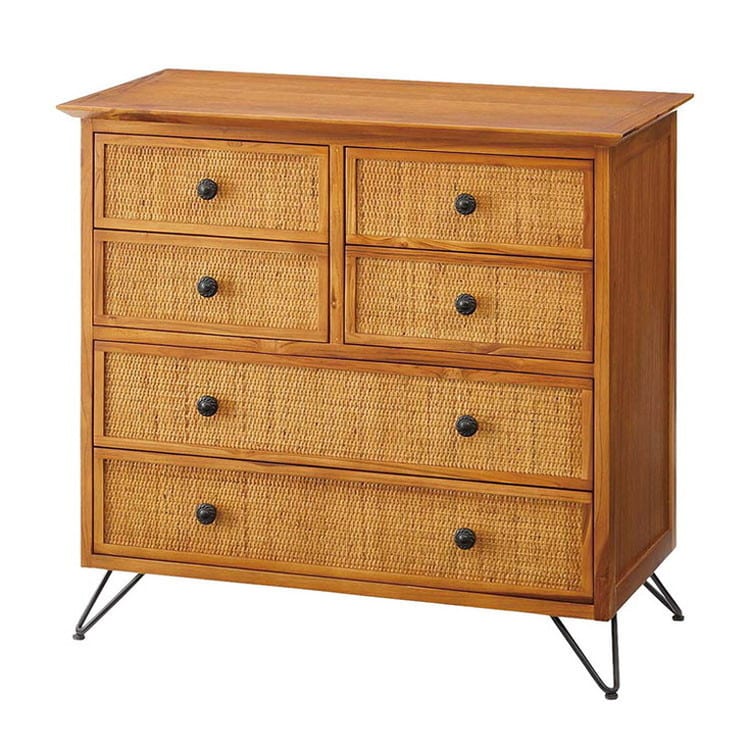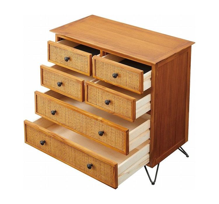 籐 チェスト 4段 6杯 エスニック風 チーク材フレーム 幅80cm ラタン製 ラタンチェスト 収納 整理 衣類収納 完成品 籐家具 引出し 木製 ラタン ディスプレイ 韓国風インテリア おしゃれ【送料無料】