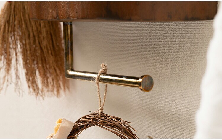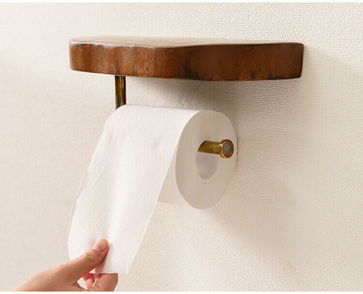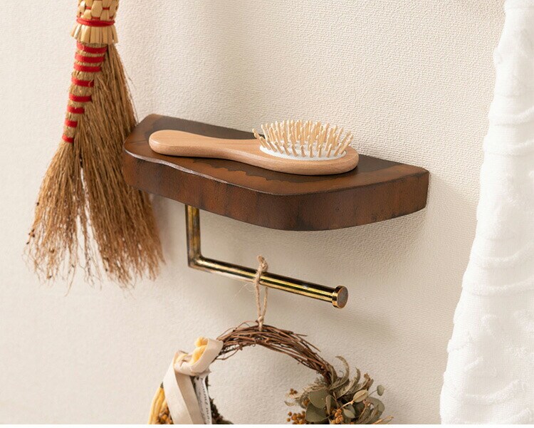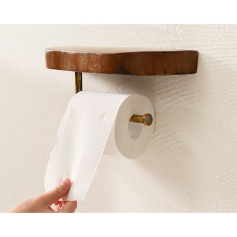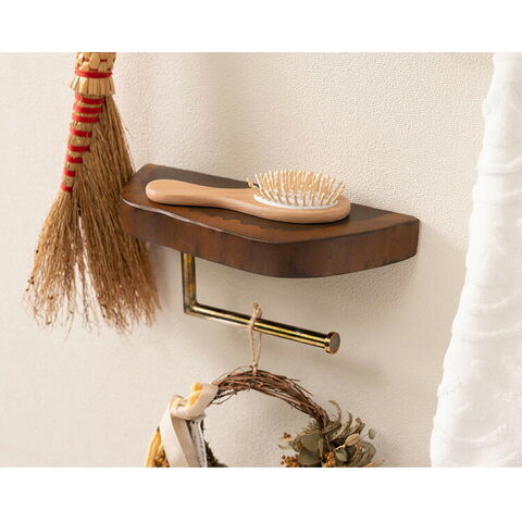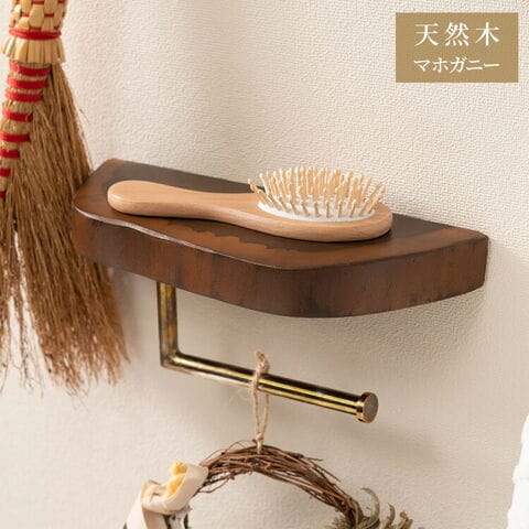ペーパーホルダー マホガニー 壁掛け 収納 収納棚 木製 天然木 ブラウン マホガニー材 木 おしゃれ シンプル ナチュラル 北欧 カントリー カントリー調 ゴールド 金 金色【送料無料】