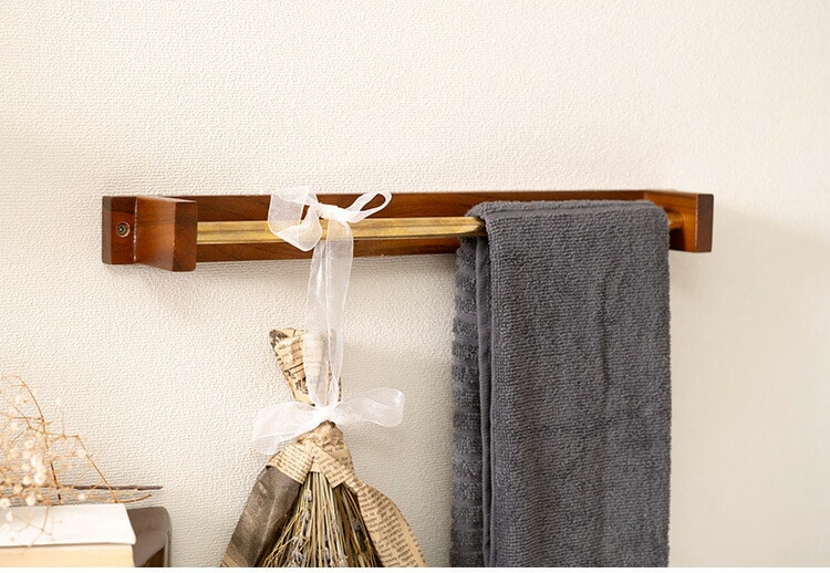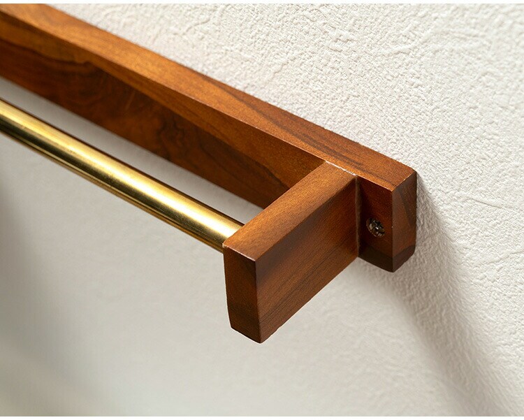 タオルハンガー チーク バータイプ タオル掛け タオルホルダー 壁掛け 収納 収納棚 木製 天然木 ブラウン チーク材 木 おしゃれ シンプル ナチュラル 北欧 カントリー カントリー調 ゴールド【送料無料】のレビュー