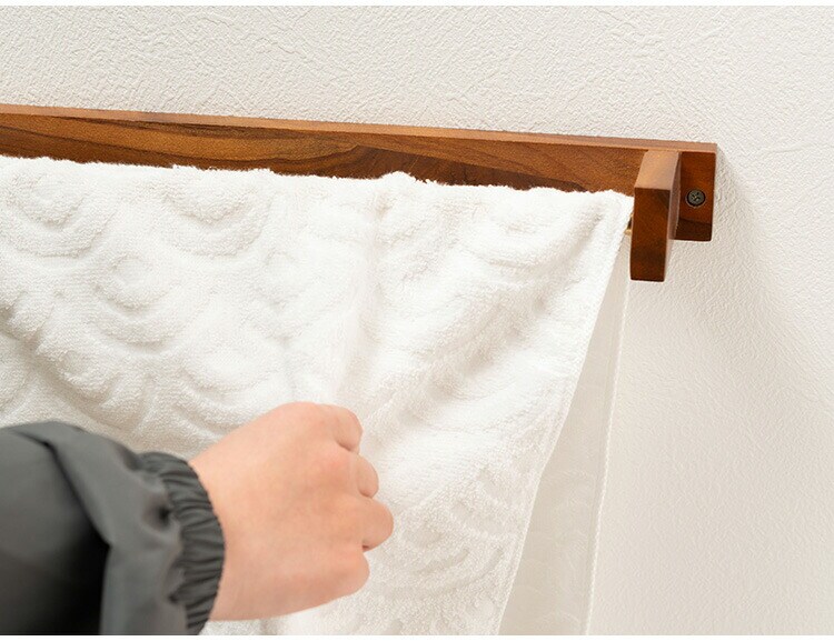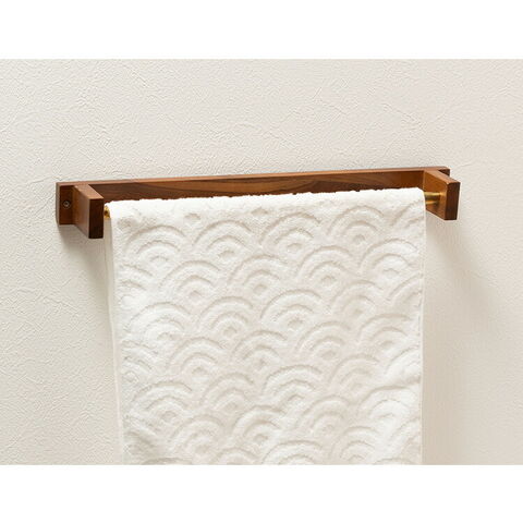 タオルハンガー チーク バータイプ タオル掛け タオルホルダー 壁掛け 収納 収納棚 木製 天然木 ブラウン チーク材 木 おしゃれ シンプル ナチュラル 北欧 カントリー カントリー調 ゴールド【送料無料】