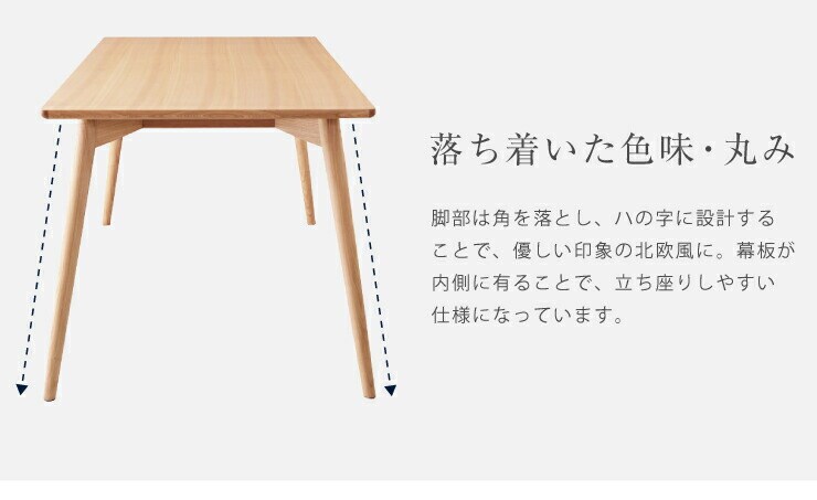 脚部は角を落とし、ハの字に設計することで、優しい印象に。