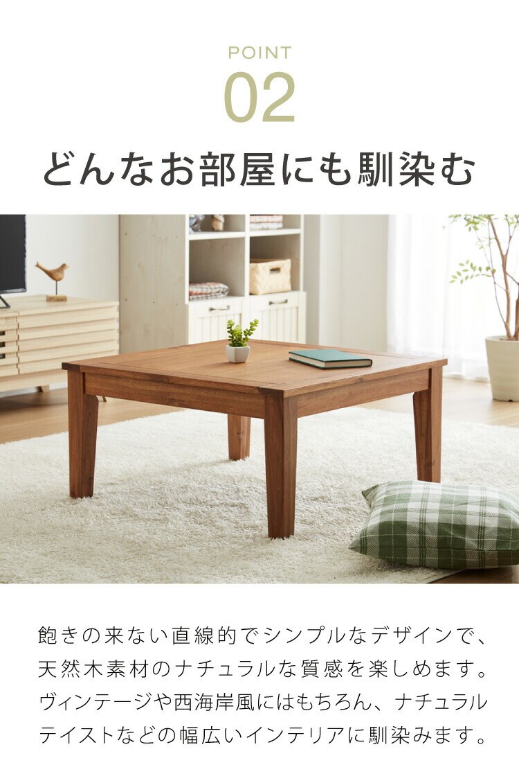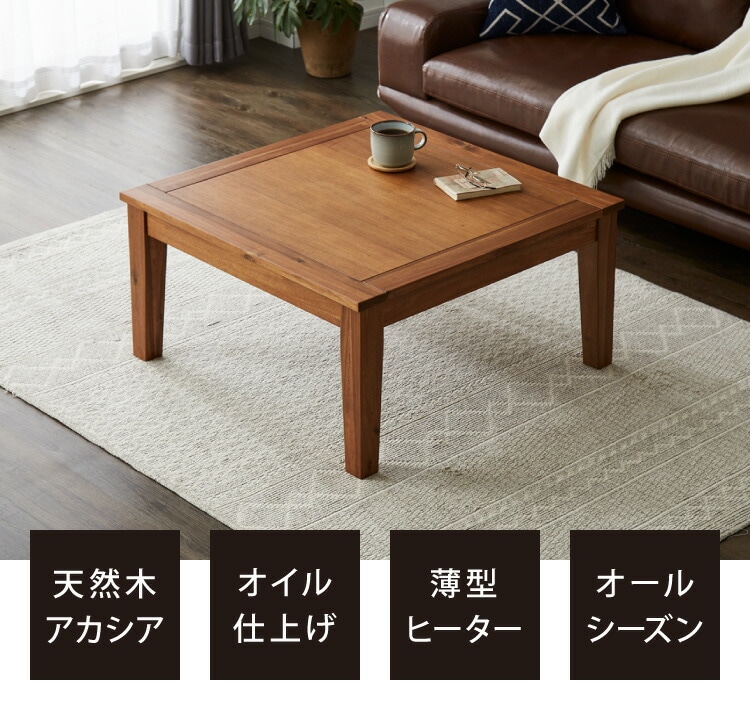 こたつ こたつテーブル 幅75cm 正方形 天然木 アカシア オールシーズン センターテーブル コタツ モダン 木製 一人暮らし 炬燵 コンパクト おしゃれ シンプル 暖房器具【送料無料】