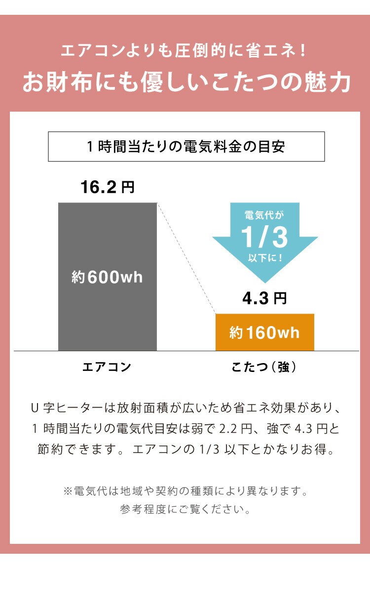 コタツには見えないテーブルのようなデザインはシーズンを選ばずご使用いただけます。