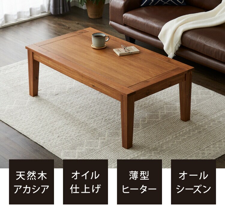 こたつ こたつテーブル 幅105cm 長方形 天然木 アカシア オールシーズン センターテーブル コタツ モダン 木製 一人暮らし 炬燵 コンパクト おしゃれ シンプル 暖房器具【送料無料】