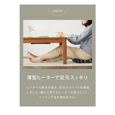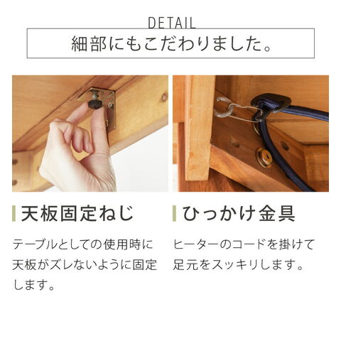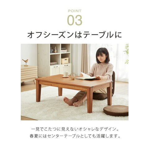 コタツには見えないテーブルのようなデザインはシーズンを選ばずご使用いただけます。