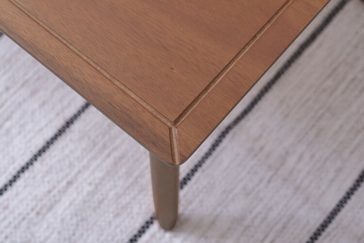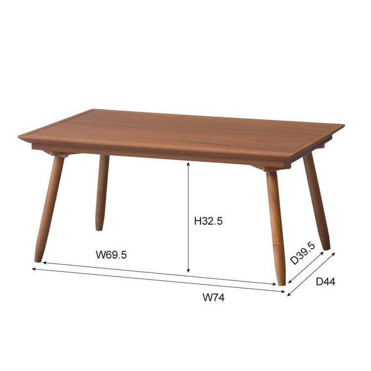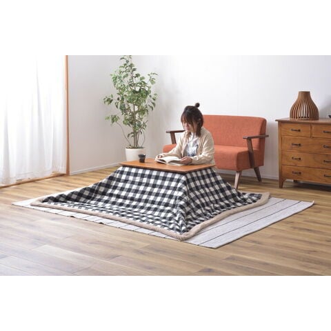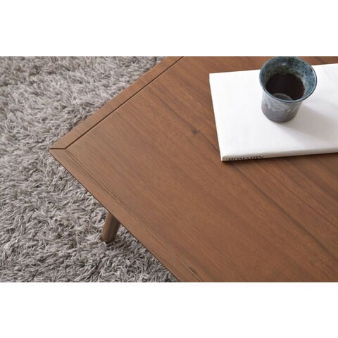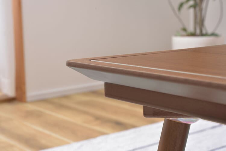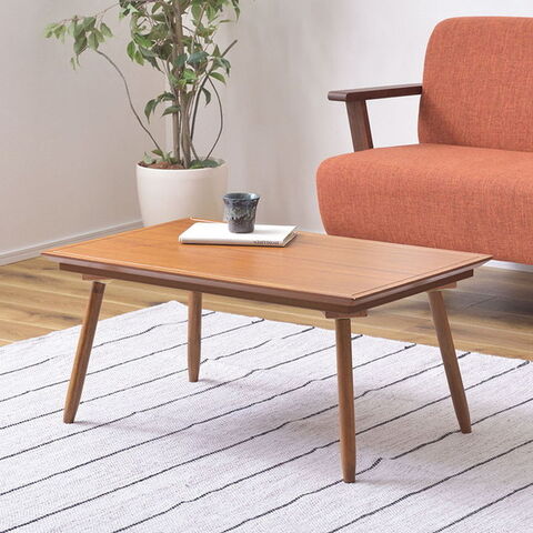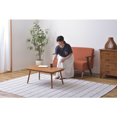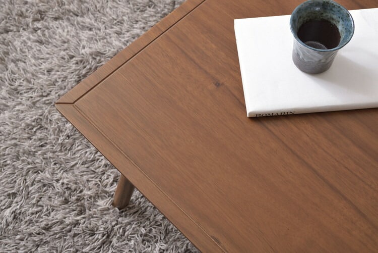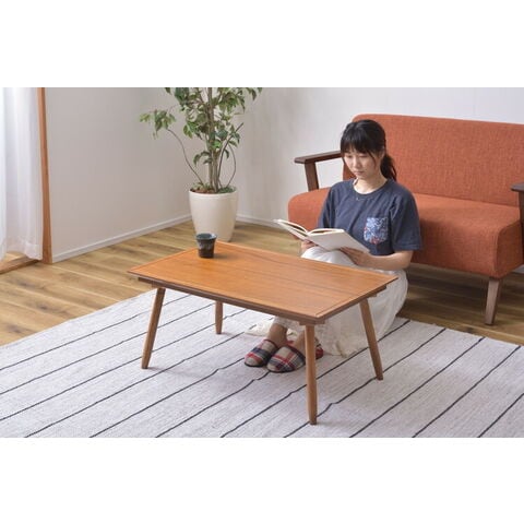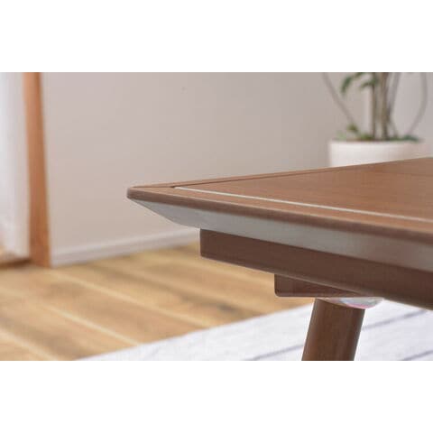 一人使いにちょうど良いコンパクトなコタツテーブル。天然木の風合いや天板のラインなどシンプルでシャープな印象のテーブルです。