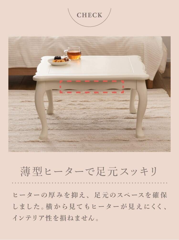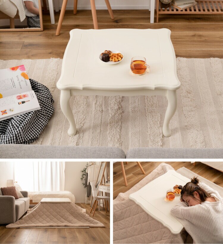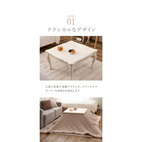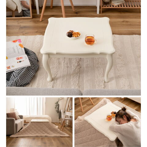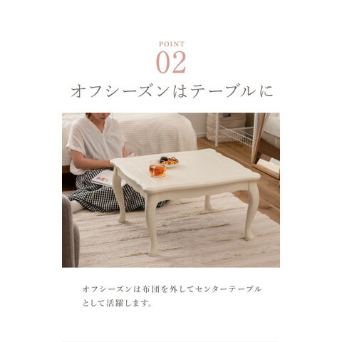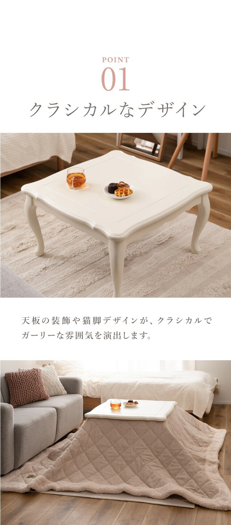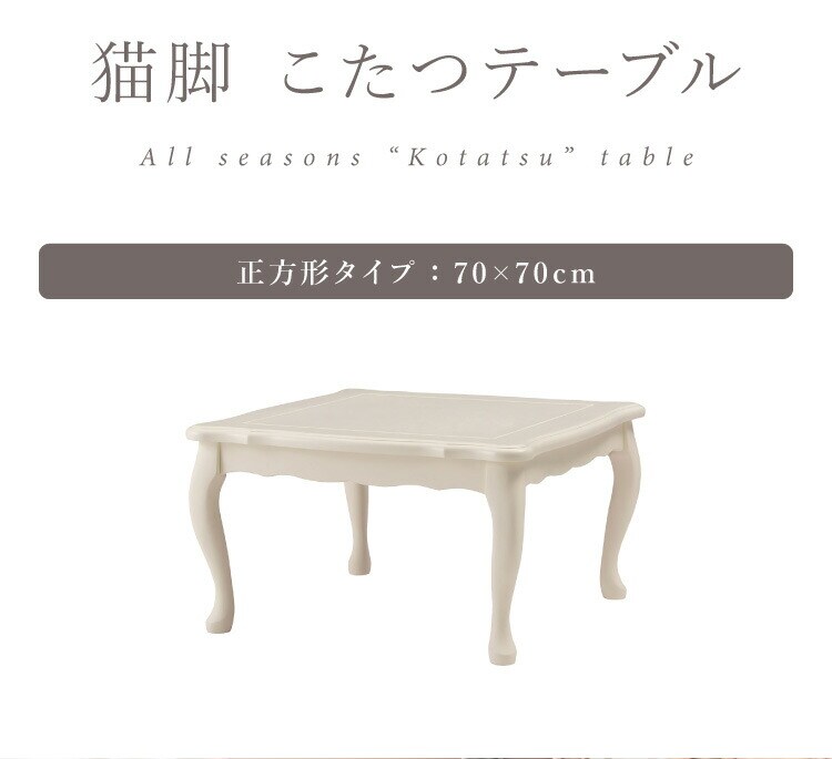 こたつ 石英管ヒーター 幅70cm 正方形 テーブル 猫脚 節電 おしゃれ 白 ホワイト スイッチ シンプル オールシーズン 木製 天然木 やぐら 一人暮らし リビング ソファ 座椅子 女性 コタツ 炬燵【送料無料】