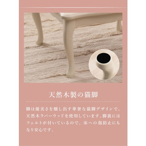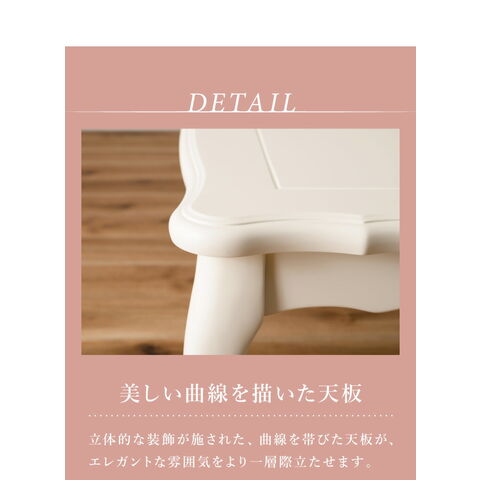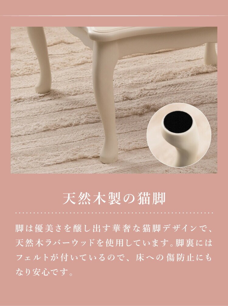 天板の装飾や猫脚のクラシカルなデザインはシーズン選ばずお使い頂けます。ホワイトカラーと天板のデザインは、布団を掛けても元々のイメージはそのままに、クラシカルでガーリーな雰囲気を演出してくれます。