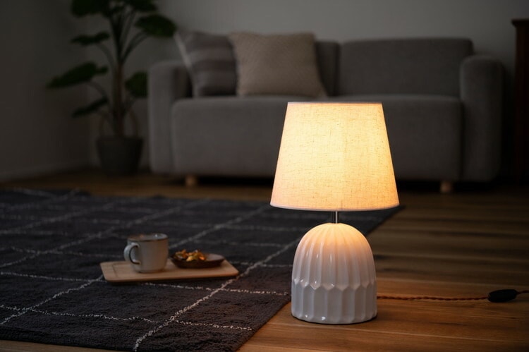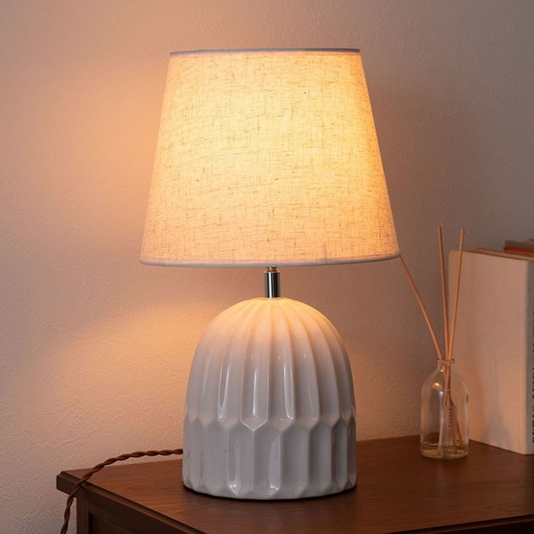 ●ありそうで無かった「陶器+ファブリック」の組合わせがお洒落なテーブルライト。●デスク上ではもちろん、ソファサイド・ベッドサイド等いろいろな場所で活躍。●シェードは角度を調整する事が出来るので、間接照明としてだけでなく、補助灯としても使えます。●読書タイムの空間を落ち着かせてくれるだけでなく眼にも優しいので、おやすみ前のリラックスタイムにもぴったり。●リラックスタイムが終わったら、手元のスイッチですぐに消灯できます。●テーブルライトは夜間だけでなく、日中のインテリアにも最適。ちょっと物足りなかった空間も、置くだけでグレードアップ。●テーブルライトをお部屋に取り入れて日々の生活をワンラックUP。