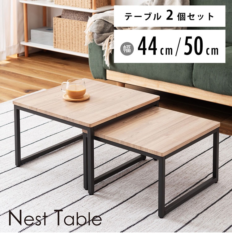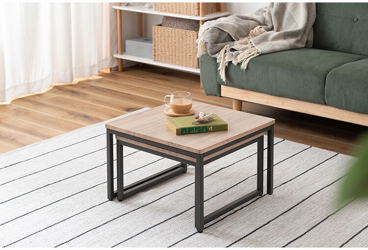 ネストテーブル MIP-15D 東谷 ネストテーブル テーブル 机 ダブル 正方形 リビングテーブル ローテーブル センターテーブル ソファテーブル コンパクト 木目 ナチュラル スチール シンプル ワイド【送料無料】