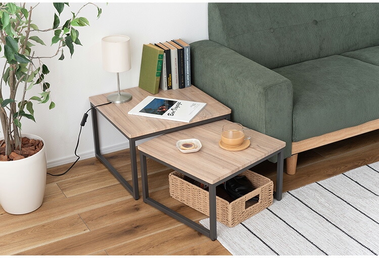●1つはサイドテーブルに、もう1つはセンターテーブルとしてなど、別々の場所で使うのもおすすめ。