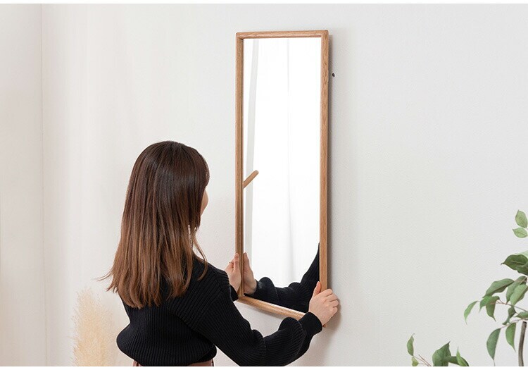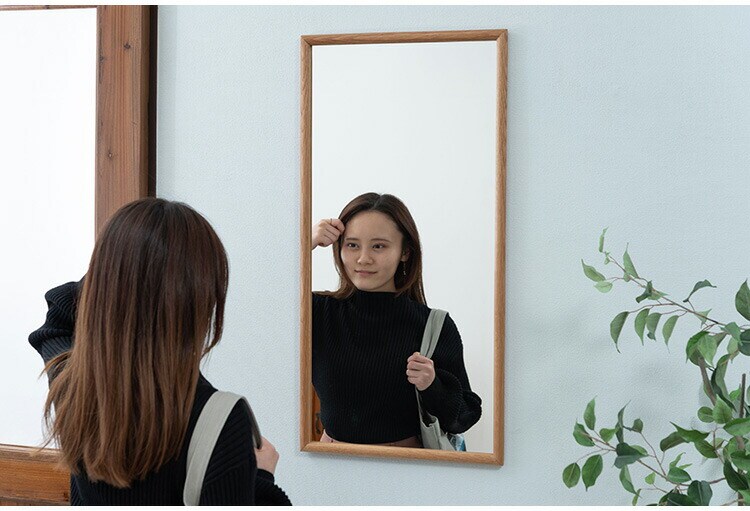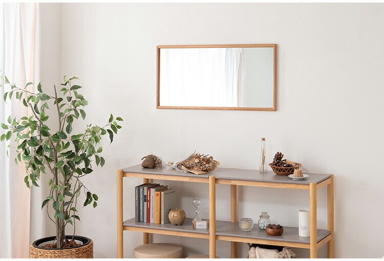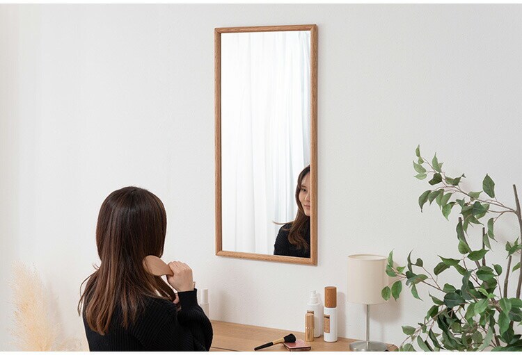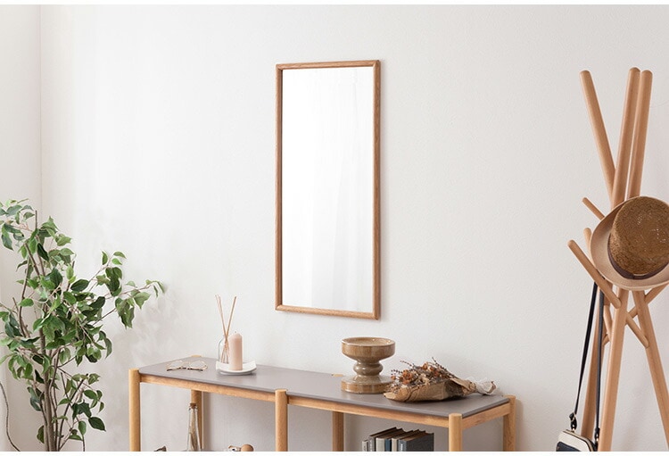 あたたかみのあるオークの天然木を、贅沢に使用したウォールミラー。