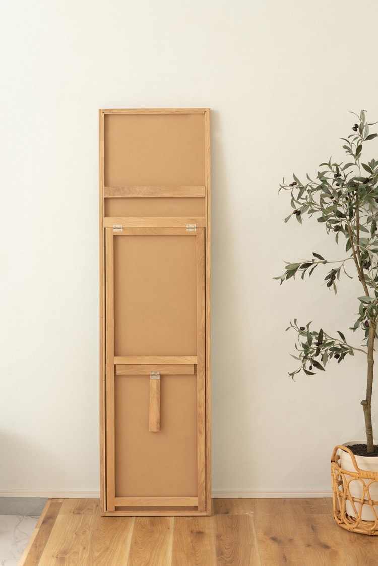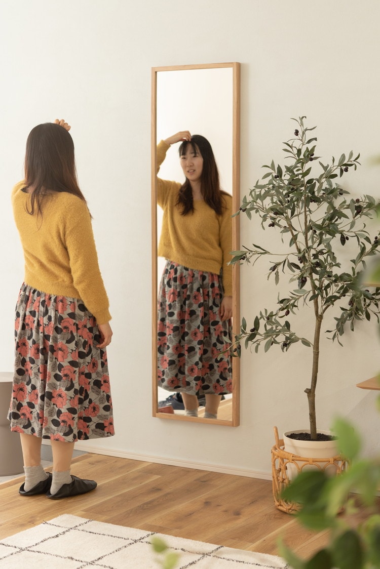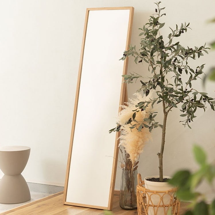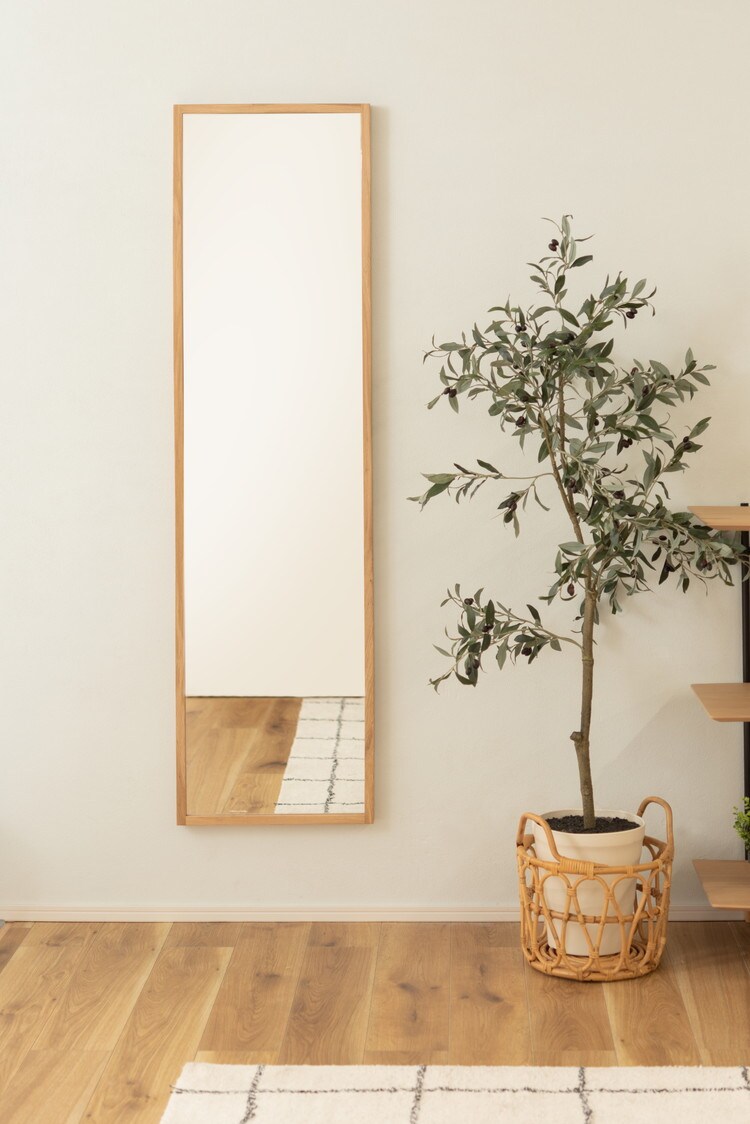 ●耐久性があり高級木材の一つとされる、美しく個性的な雰囲気を持つ天然木(オーク)の無垢材を使用したスタンドミラー。●3mm厚の飛散防止ミラーを使用しているので、安心してお使いいただけます。●高さ164cmの大型ミラーなので全身をしっかりと映すことができます。●スタンドを外して壁掛けミラーとしても使用可能。玄関に設置して姿見として使うなど様々な場所で使えます。